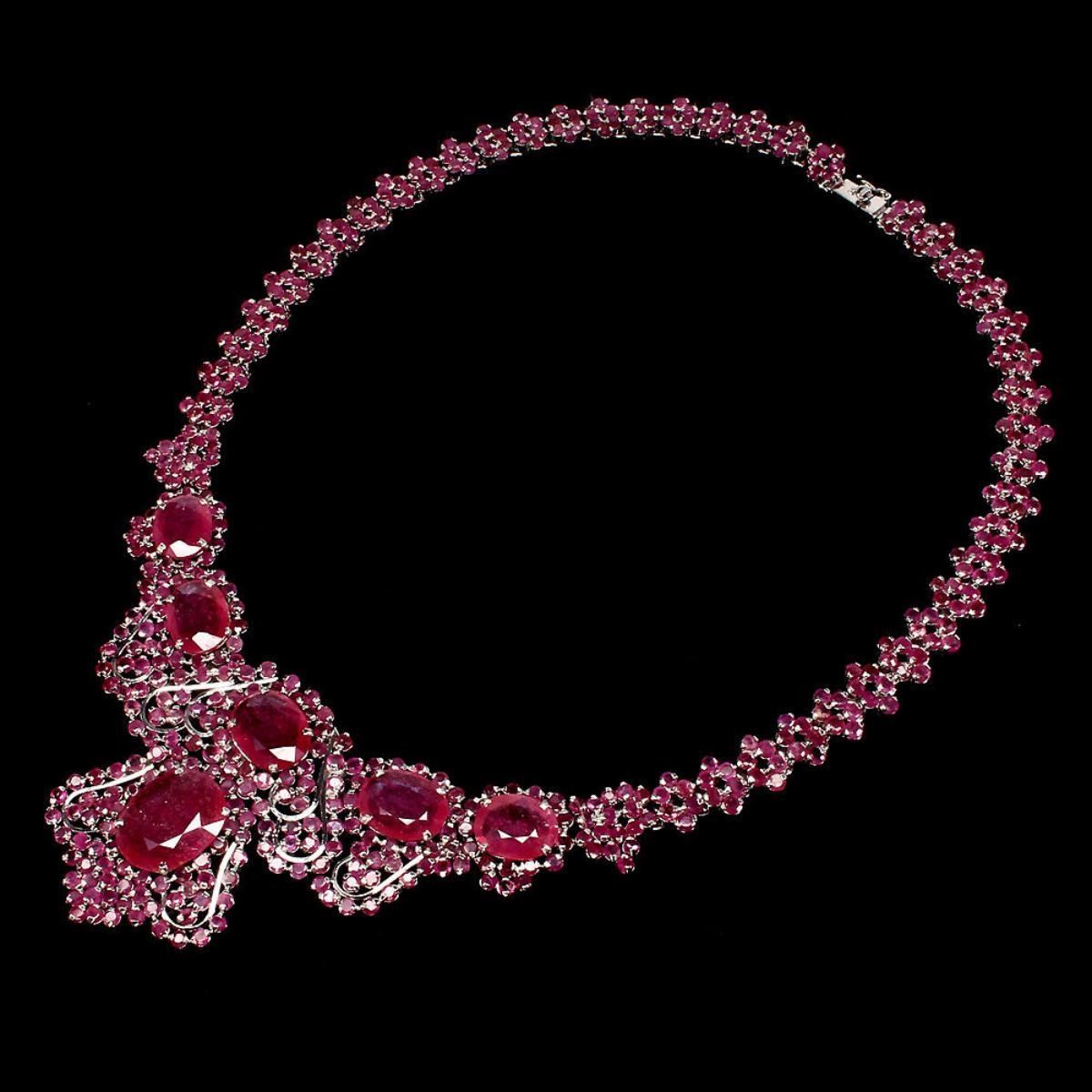 925 STERLING SILVERPLATE14K WHITE GOLDLENGTH (INCHES)17MAIN STONERUBYOTHER GEMSTOTAL WEIGHT413.57 CT (TOTAL WEIGHT OF SILVER + STONE)DIMENSION* STONE 2.5 TO 18.0 X 13.0 MM. * STONES PART LENGTH 410.0 X 52.0 MM.MAIN STONE SHAPEOVAL CUTMAIN STONE COLORTOP RICH RED PINKCLARITY/GRADETRANSPARENTLUSTERPRECIOUSTREATMENT- Yes;ORIGINMOZAMBIQUEHARDNESS9.0