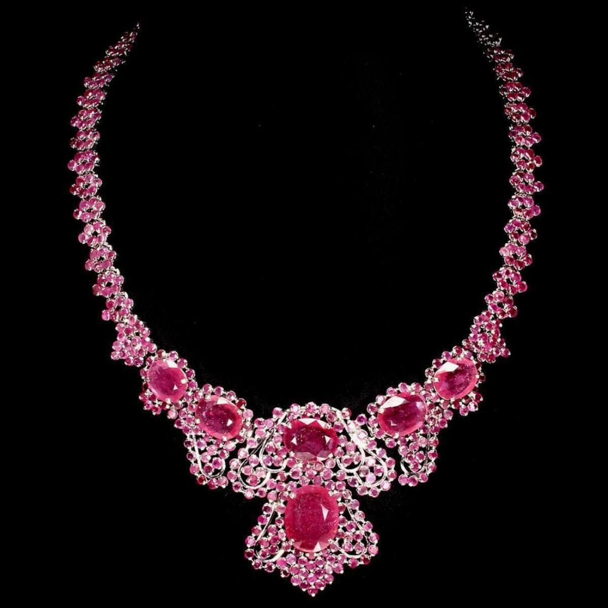 925 STERLING SILVERPLATE14K WHITE GOLDLENGTH (INCHES)17MAIN STONERUBYOTHER GEMSTOTAL WEIGHT413.57 CT (TOTAL WEIGHT OF SILVER + STONE)DIMENSION* STONE 2.5 TO 18.0 X 13.0 MM. * STONES PART LENGTH 410.0 X 52.0 MM.MAIN STONE SHAPEOVAL CUTMAIN STONE COLORTOP RICH RED PINKCLARITY/GRADETRANSPARENTLUSTERPRECIOUSTREATMENT- Yes;ORIGINMOZAMBIQUEHARDNESS9.0