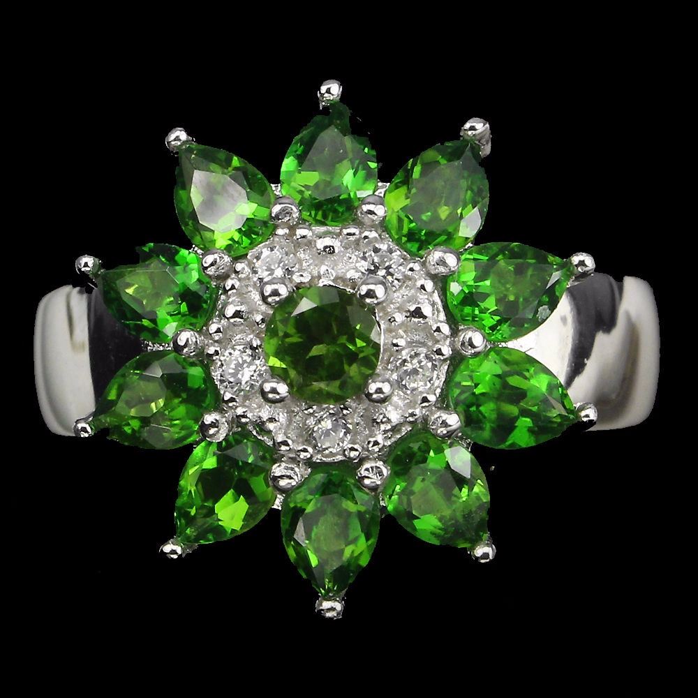 925 STERLING SILVER.......;PLATE-14K WHITE GOLD;RING SIZE/LENGTH (INCHES)7;MAIN STONE-CHROME DIOPSIDE;OTHER GEMS-CUBIC ZIRCONIA;TOTAL WEIGHT-29.22 CT (TOTAL WEIGHT OF SILVER + STONE);DIMENSION* STONE 3.5 TO 4.0 X 3.0 MM. * CZ 1.0 MM. * FACE ;RING 16.0 MM.;MAIN STONE SHAPE-PEAR CUT;MAIN STONE COLOR-TOP RICH GREEN;CLARITY/GRADEIF TO VVS;LUSTER-DELUXE;TREATMENT-UNHEATED;ORIGIN-RUSSIAHARDNESS5.0 - 5.5