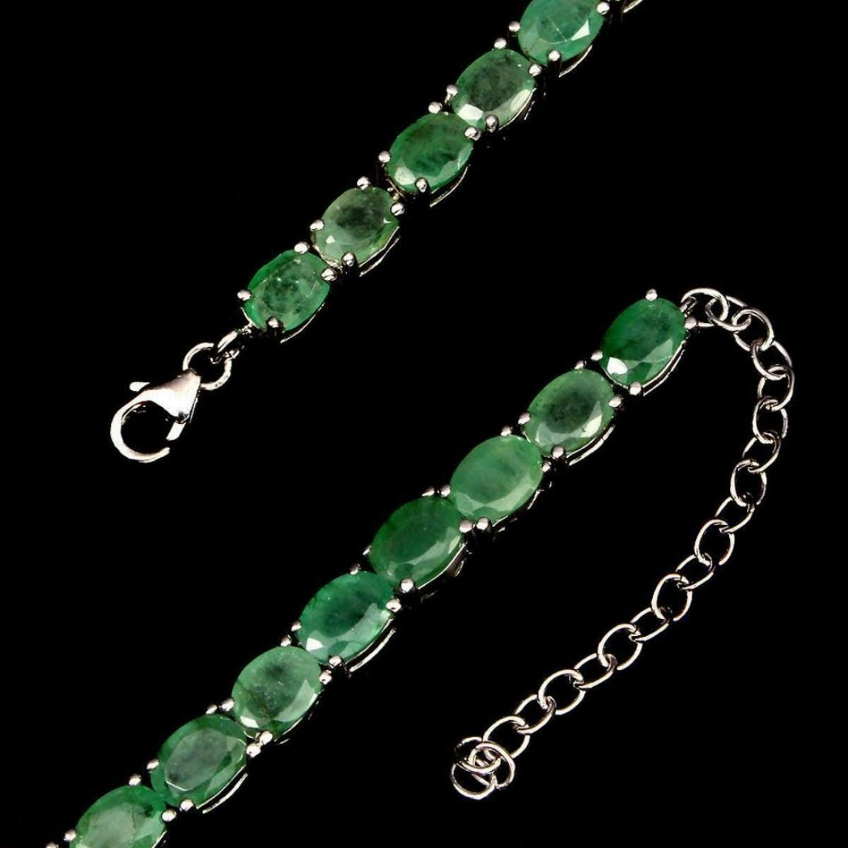 925 STERLING SILVER;PLATE14K WHITE GOLD;LENGTH (INCHES)9;MAIN STONEEMERALD;TOTAL WEIGHT71.89 CT (TOTAL WEIGHT OF SILVER + STONE)DIMENSION* STONE 7.0 X 5.0 MM. * FACE BRACELET 182.0 X 5.0 MM.;;MAIN STONE SHAPEOVAL CUTMAIN STONE COLORTOP RICH GREENCLARITY/GRADETRANSPARENT;TREATMENTUNHEATED;ORIGINBRAZIL;