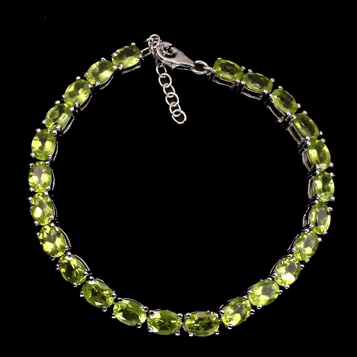 925 STERLING SILVER;PLATE14K WHITE GOLD;....LENGTH (INCHES)8.5;MAIN STONEPERIDOTOTHER GEMSTOTAL WEIGHT69.21 CT (TOTAL WEIGHT OF SILVER + STONE)DIMENSION* STONE 7.0 X 5.0 MM. * FACE BRACELET 172.0 X 5.0 MM.MAIN STONE SHAPEOVAL CUTMAIN STONE COLORTOP RICH GREENCLARITY/GRADEIF TO VVSLUSTERSUBLIMETREATMENTUNHEATEDORIGINPAKISTANHARDNESS6.5 - 7.0