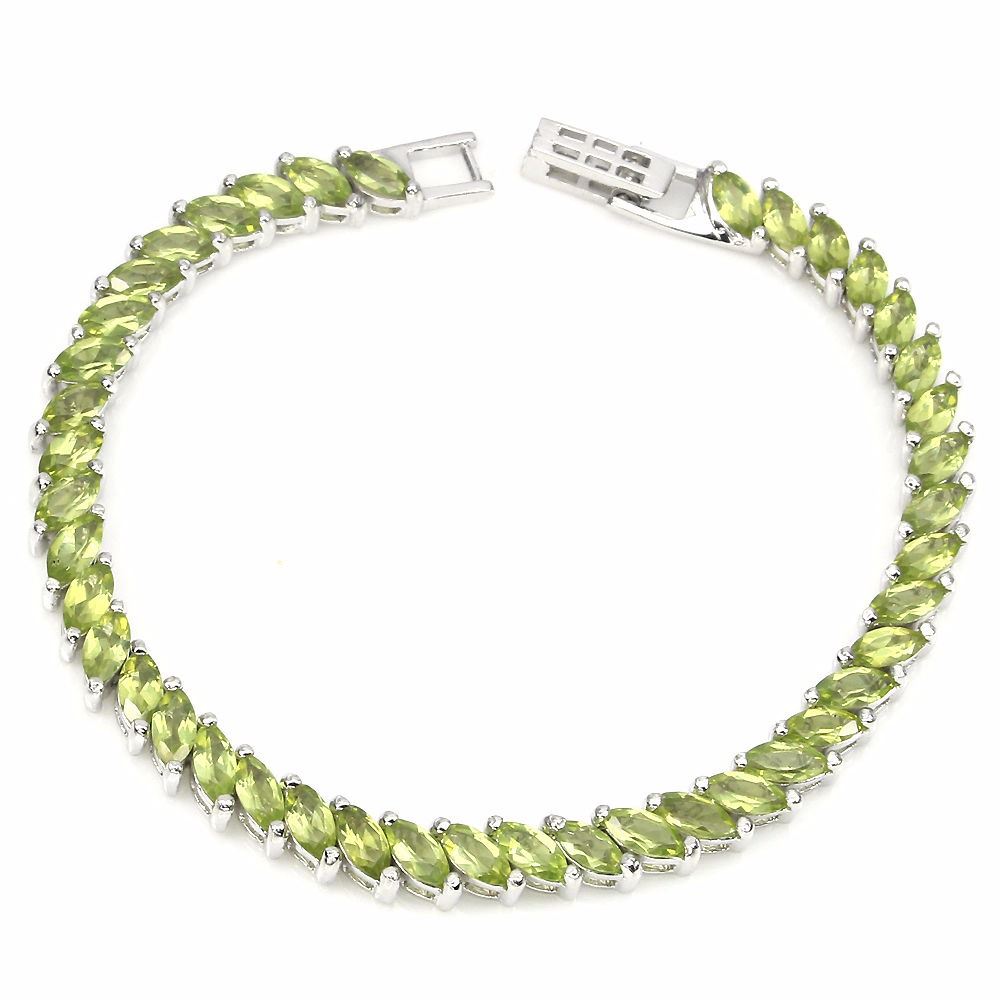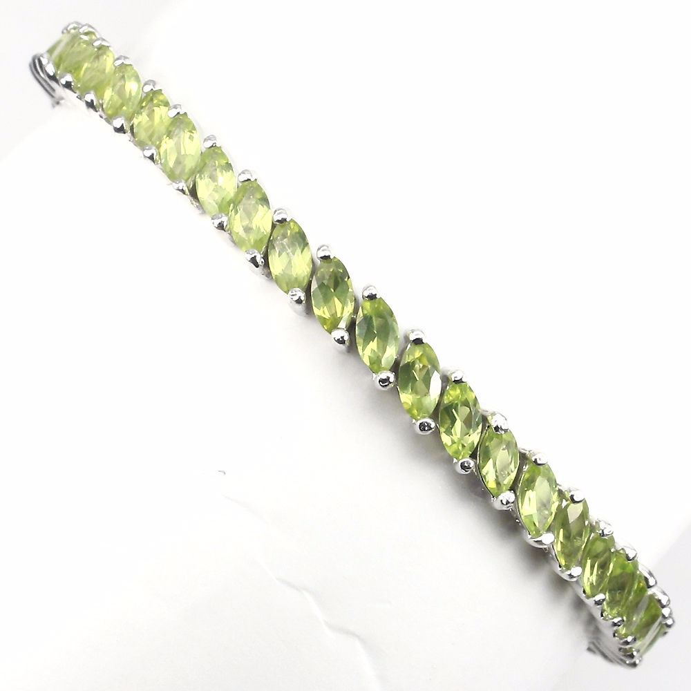 925 STERLING SILVER;14k glod plated;LENGTH (INCHES)7.5;MAIN STONE-PERIDOT;TOTAL WEIGHT-82.94 CT (TOTAL WEIGHT OF SILVER + STONE);DIMENSION* STONE 6.0 X 3.0 MM. * FACE BRACELET 170.0 X 6.0 MM.;;MAIN STONE SHAPE-MARQUISE CUTMAIN STONE COLOR-TOP RICH GREEN;CLARITY/GRADE-IF TO VVS;LUSTER-GORGEOUS;TREATMENT-UNHEATED;ORIGIN-PAKISTAN;HARDNESS-6.5 - 7.0