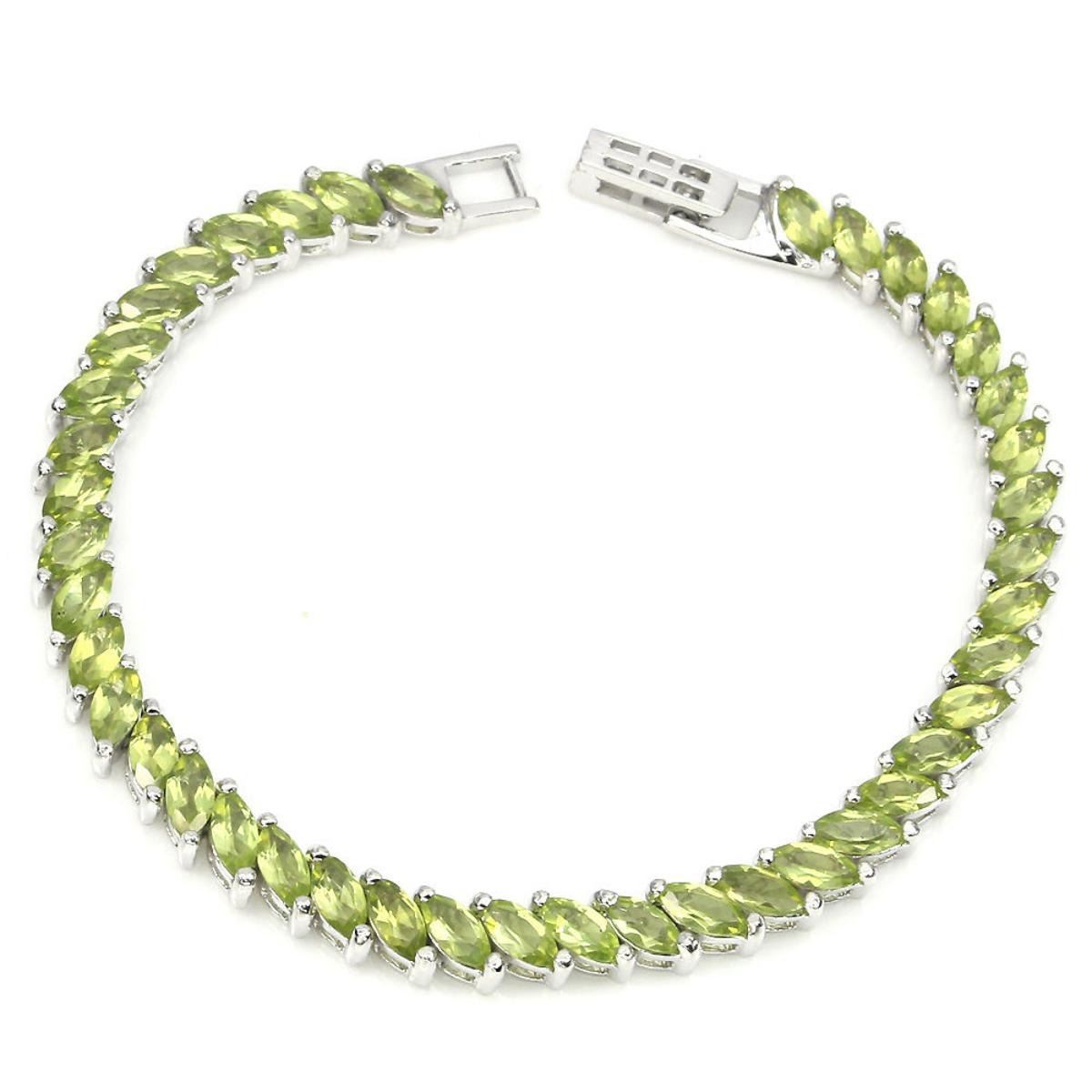 925 STERLING SILVER;14k glod plated;LENGTH (INCHES)7.5;MAIN STONE-PERIDOT;TOTAL WEIGHT-82.94 CT (TOTAL WEIGHT OF SILVER + STONE);DIMENSION* STONE 6.0 X 3.0 MM. * FACE BRACELET 170.0 X 6.0 MM.;;MAIN STONE SHAPE-MARQUISE CUTMAIN STONE COLOR-TOP RICH GREEN;CLARITY/GRADE-IF TO VVS;LUSTER-GORGEOUS;TREATMENT-UNHEATED;ORIGIN-PAKISTAN;HARDNESS-6.5 - 7.0