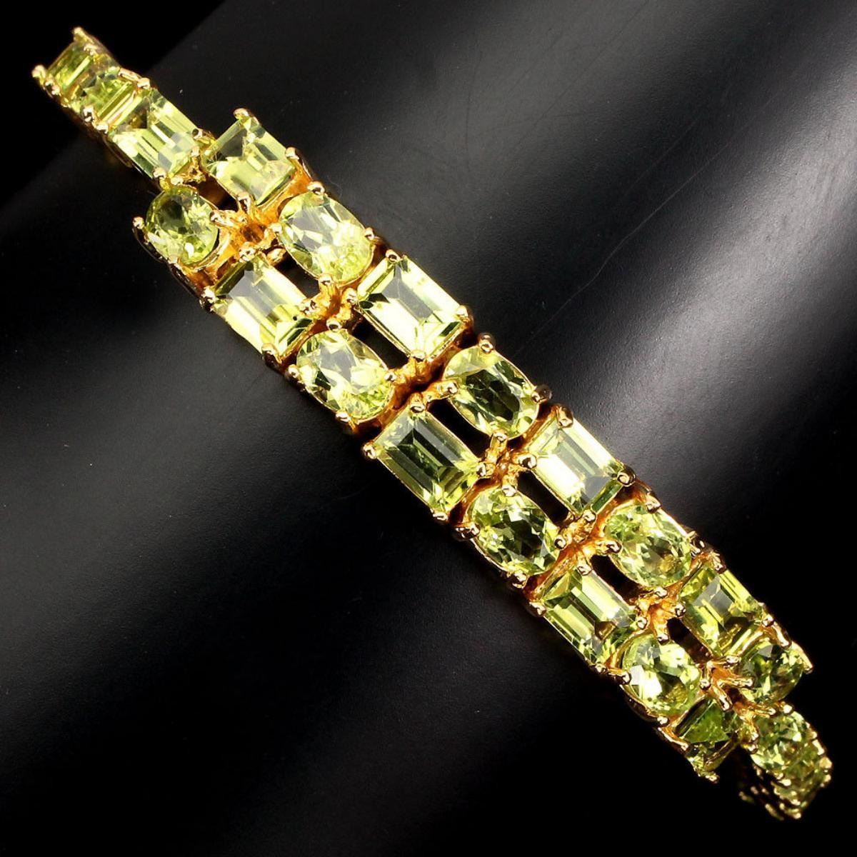 925 STERLING SILVER;PLATE14K YELLOW GOLD;LENGTH (INCHES)9;MAIN STONEPERIDOT;TOTAL WEIGHT83.19 CT (TOTAL WEIGHT OF SILVER + STONE)DIMENSION* STONE 6.0 X 4.0 MM. * FACE BRACELET 180.0 X 11.0 MM.MAIN STONE SHAPEOCTAGON CUTMAIN STONE COLORTOP RICH GREENCLARITY/GRADEIF TO VVSLUSTERPRECIOUSTREATMENTUNHEATEDORIGINPAKISTANHARDNESS6.5 - 7.0
