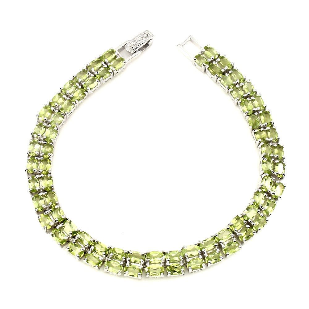 925 STERLING SILVER;PLATE14K WHITE GOLD;;LENGTH (INCHES)7.5;MAIN STONEPERIDOTTOTAL WEIGHT93.67 CT (TOTAL WEIGHT OF SILVER + STONE)DIMENSION* STONE 5.0 X 3.0 MM. * FACE BRACELET 181.0 X 7.0 MM.MAIN STONE SHAPEOVAL CUTMAIN STONE COLORTOP RICH GREENCLARITY/GRADEIF TO VVSLUSTERPRECIOUSTREATMENTUNHEATEDORIGINPAKISTAN