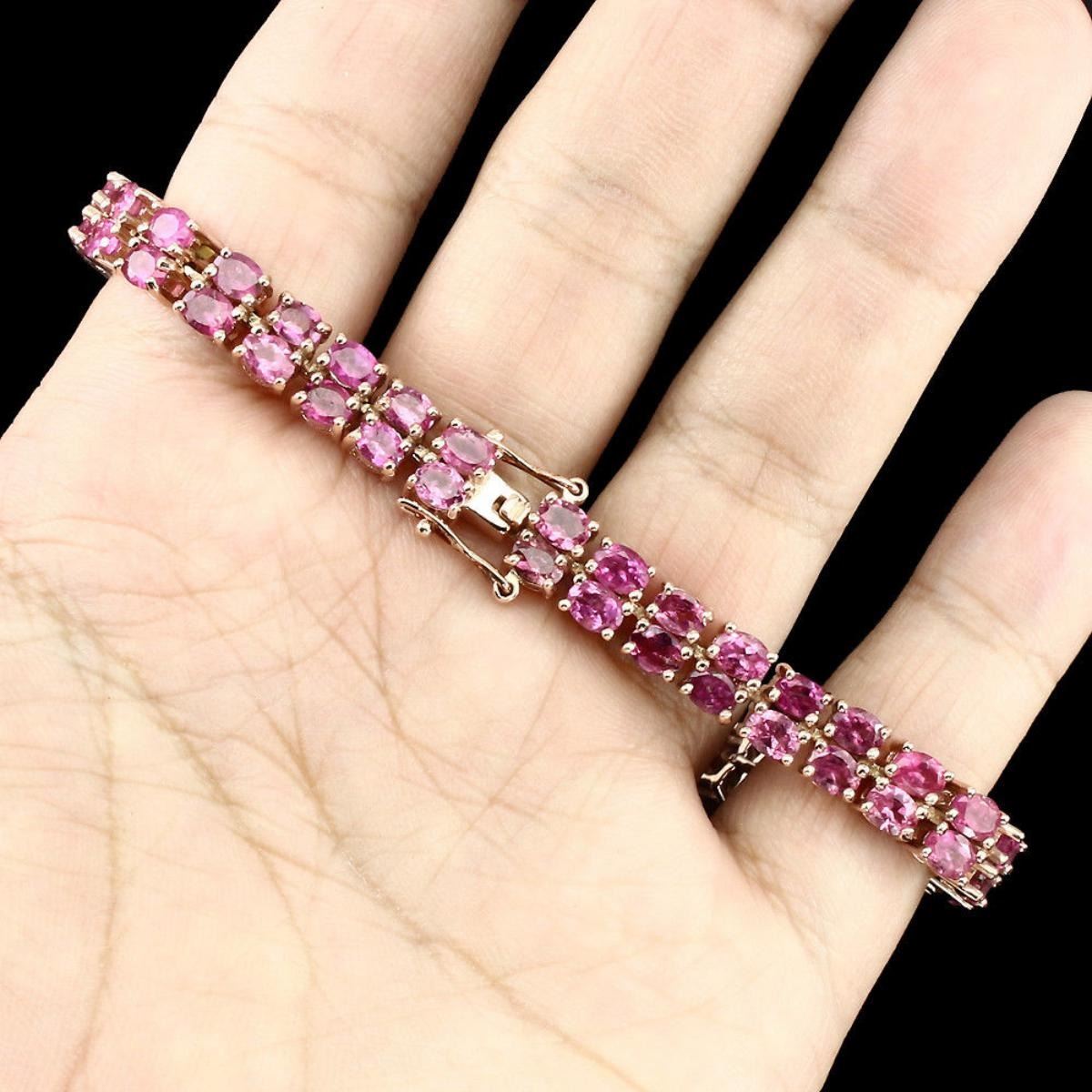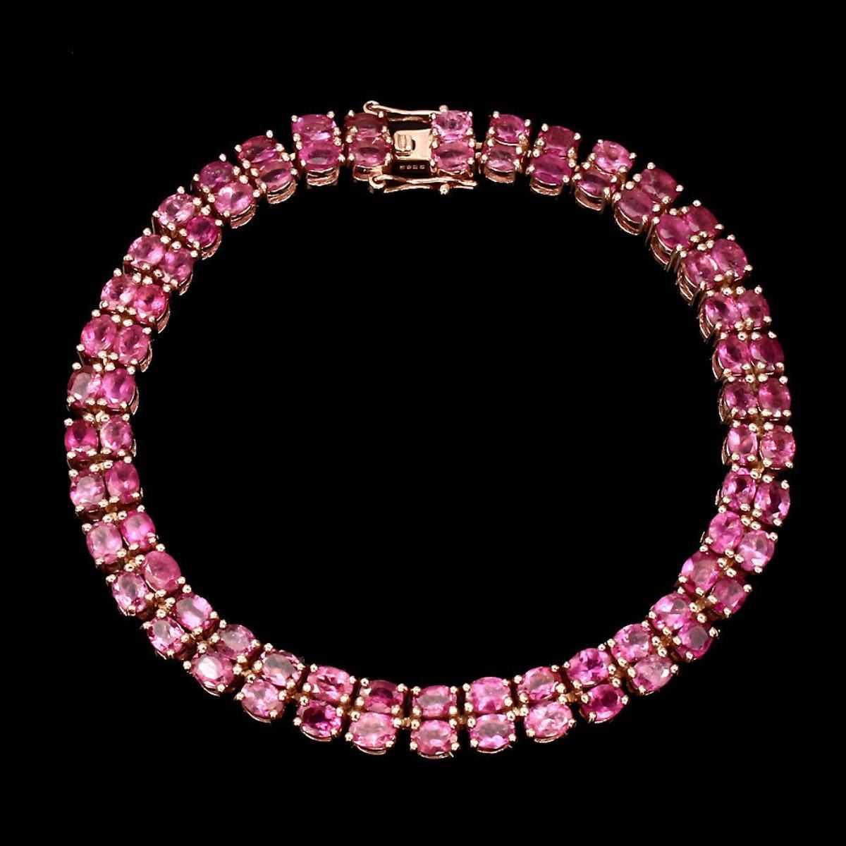 925 STERLING SILVER;PLATE....14K ROSE GOLD;LENGTH (INCHES)7.5;MAIN STONETOURMALINE;TOTAL WEIGHT100.83 CT (TOTAL WEIGHT OF SILVER + STONE)DIMENSION* STONE 4.0 X 3.0 MM. * FACE BRACELET 189.0 X 6.0 MM.;MAIN STONE SHAPEOVAL CUT;MAIN STONE COLORTOP RICH PINK;CLARITY/GRADEIF TO VVS,TRANSPARENT;LUSTERFASCINATING;TREATMENTUNHEATED;ORIGINBRAZIL;HARDNESS7.0 - 7.5;