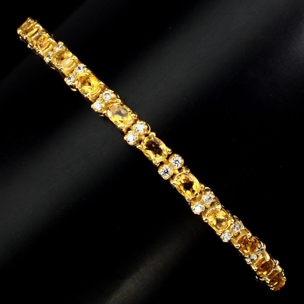 925 STERLING SILVER;PLATE14K YELLOW GOLD;LENGTH (INCHES)9;MAIN STONECITRINE;OTHER GEMSCUBIC ZIRCONIA;TOTAL WEIGHT56.53 CT (TOTAL WEIGHT OF SILVER + STONE)DIMENSION* STONE 4.0 X 3.0 MM. * CZ 1.5 MM. * FACE BRACELET 170.0 X 4.0 MM.MAIN STONE SHAPEOVAL CUTMAIN STONE COLORTOP RICH YELLOWCLARITY/GRADEIF TO VVSLUSTERMESMERIZINGTREATMENTUNHEATEDORIGINBRAZILHARDNESS7.0