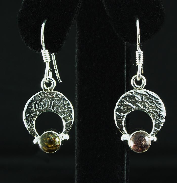 Natural Tourmaline 12.39ctw Crescent Design .925 Earrin **|**|** 1.28in. Long Sterling Silver Dangling Hook Earring with a Cabochon Mix Tourmaline Gem Measuring 5mm Round ; MSRP: $300