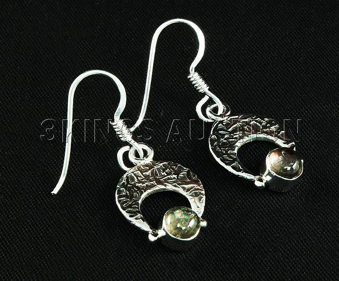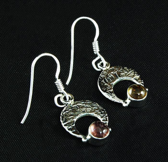 Natural Tourmaline 12.39ctw Crescent Design .925 Earrin **|**|** 1.28in. Long Sterling Silver Dangling Hook Earring with a Cabochon Mix Tourmaline Gem Measuring 5mm Round ; MSRP: $300
