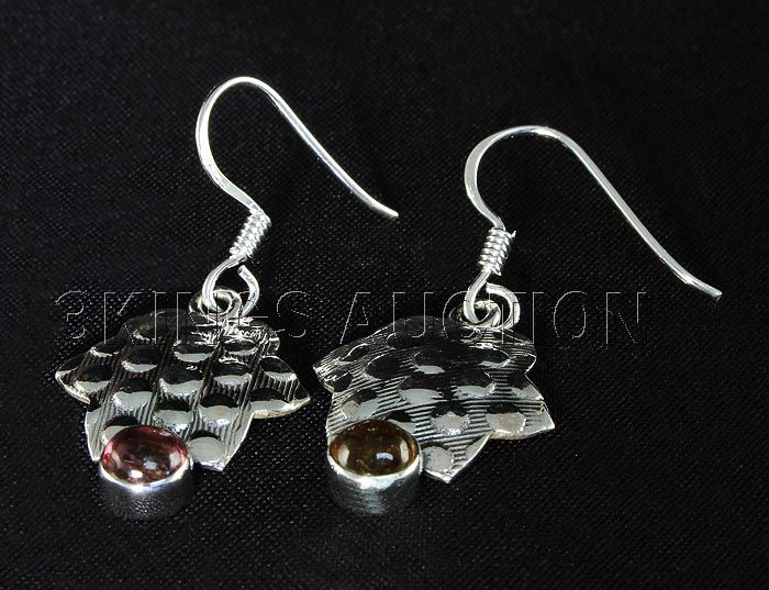 Natural Tourmaline 17.72ctw Star Design .925 Earring **|**|** 1.43in. Long Sterling Silver Dangling Hook Earring with a Cabochon Mix Tourmaline Gem Measuring 5mm Round ; MSRP: $400
