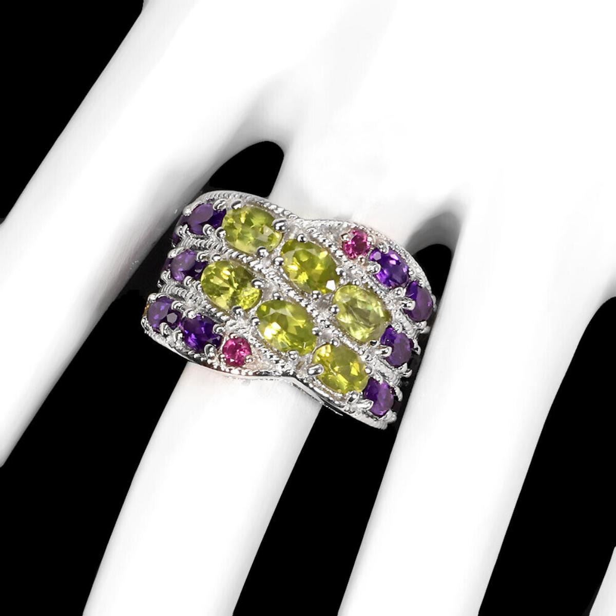 925 STERLING SILVER;PLATE-14K WHITE GOLD;RING SIZE- 8(RESIZABLE);MAIN STONE-TOURMALINE;OTHER GEMS- AMETHYST, CITRINE, RHODOLITE GARNET;TOTAL WEIGHT-9.13 GRAM (TOTAL WEIGHT OF SILVER + STONE);DIMENSION- * STONE 3.0 TO 6.0 X 4.0 MM.* RING SIZE 8.0* FACE RING 26.0 X 16.0 MM.;MAIN STONE SHAPE- OVAL; MAIN STONE COLOR- MULTI-COLOR;CLARITY/GRADE-IF TO VVS;TREATMENT-UNHEATED;ORIGIN-PAKISTAN;HARDNESS-7.0-7.5;