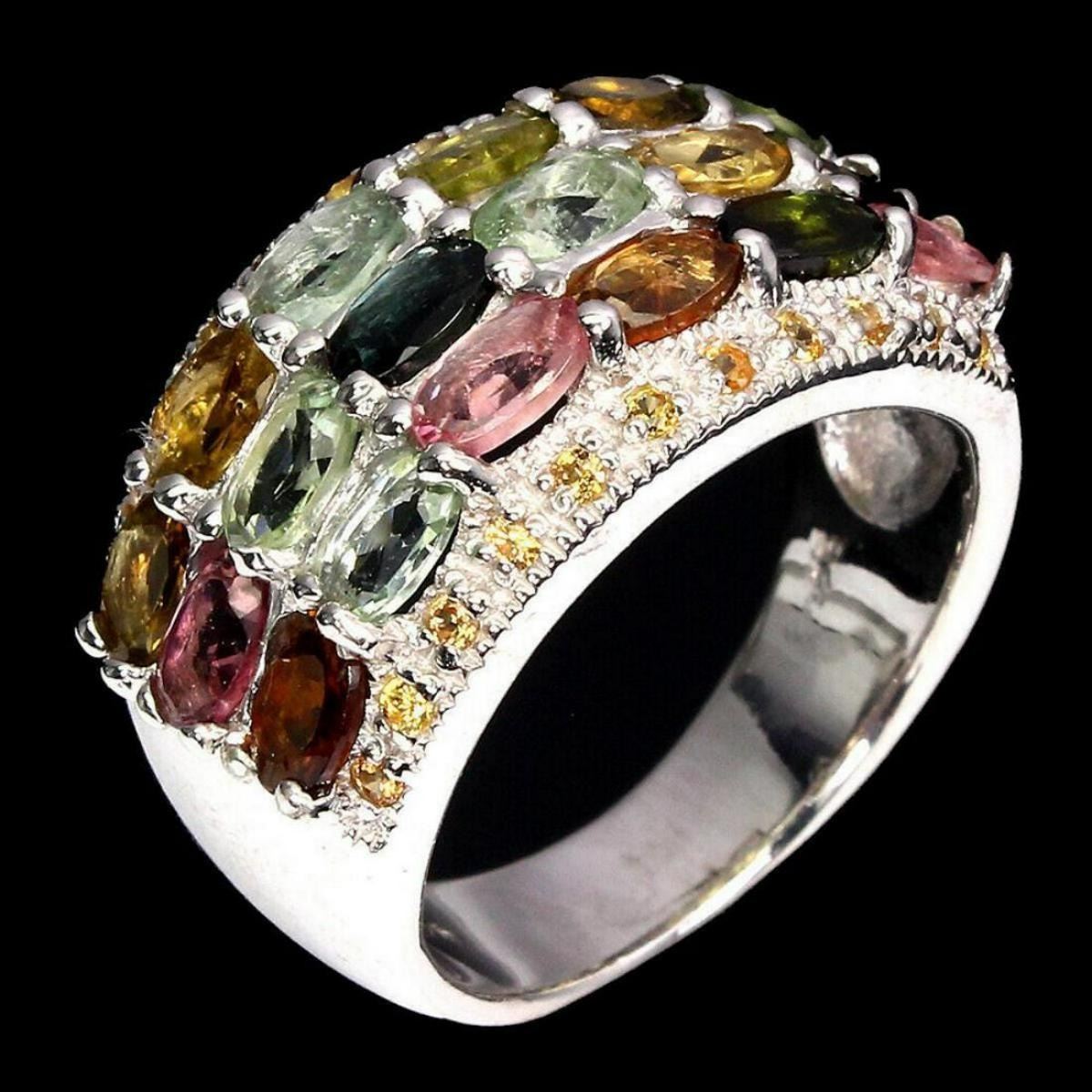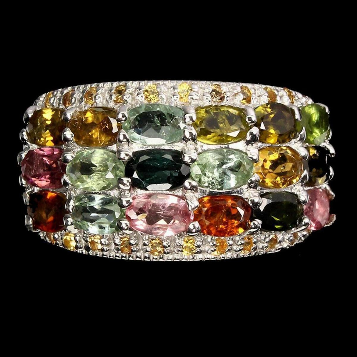 Ring;TYPE OF METAL-925 sterling silver;PLATE-14k White Gold;Ring size(resizeable)9;MAIN STONE-Tourmaline;OTHER GEMS-Sapphire;TOTAL weight-9.85 gram (total weight of silver + stone)DIMENSION-* STONE 1.0 TO 5.0 X 3.0 MM. * RING SIZE 9.0 * FACE RING- 24.0 X 14.0 MM.;MAIN STONE SHAPE-Oval Cut;MAIN STONE COLOR-Multi-Color;CLARITY/GRADE-If To Vvs;LUSTER-Gorgeous;TREATMENT-Unheated;ORIGIN-Brazil;HARDNESS-7.0-7.5;