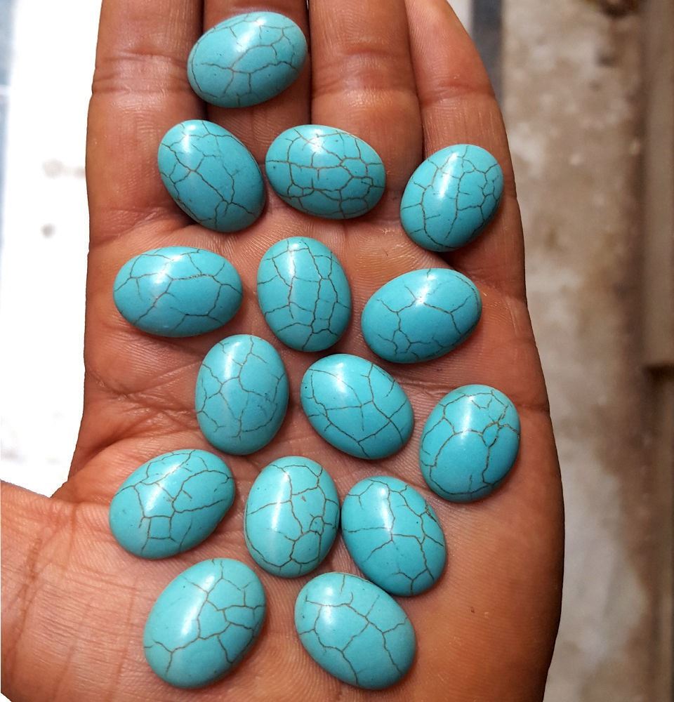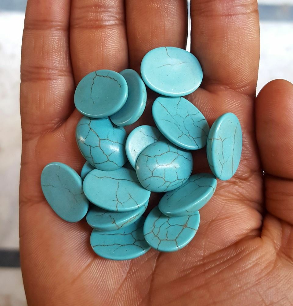 Gemstone Type : Turquoise , Color : Blue , Shape : Oval Cabochon , Size : 15x20 mm , Quantity : 25 Pieces , Weight : 264.25 Cts