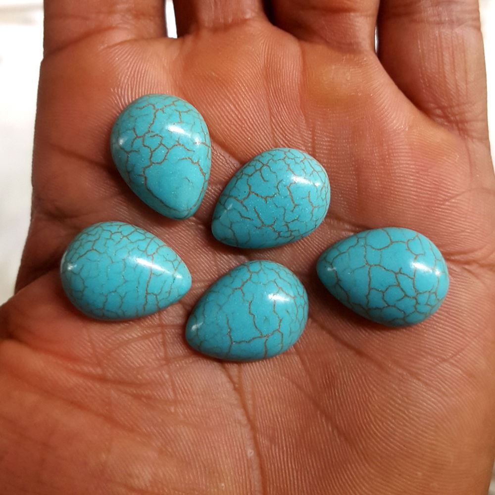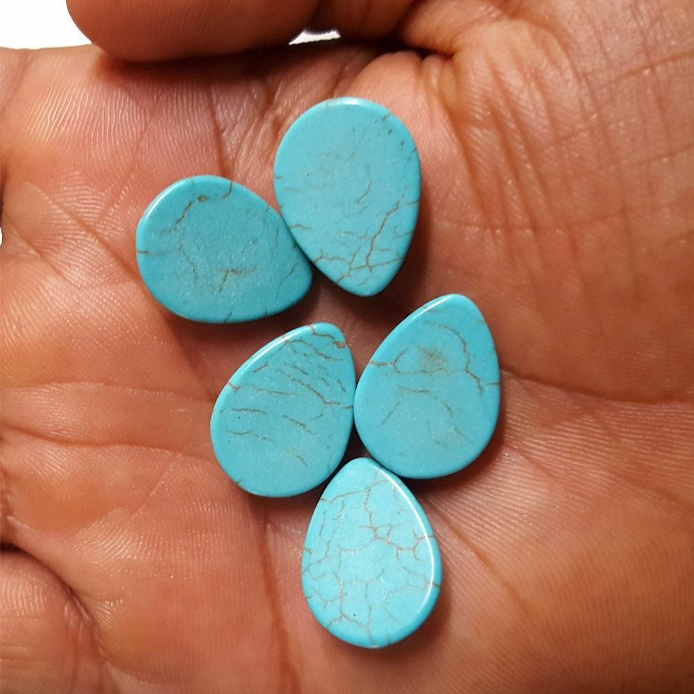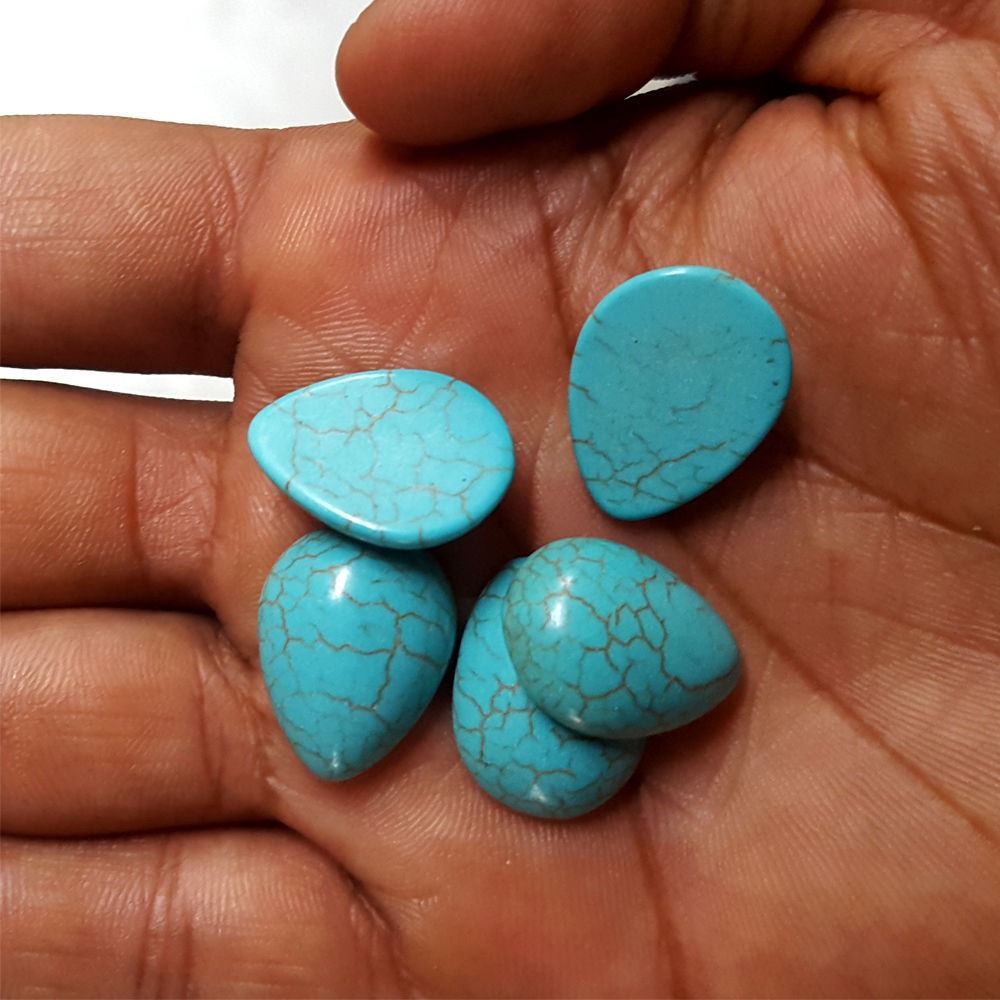 Gemstone Type : Turquoise , Color : Blue , Shape : Pear Cabochon , Size : 15x20 mm , Quantity : 25 Pieces , Weight : 257.25 Cts
