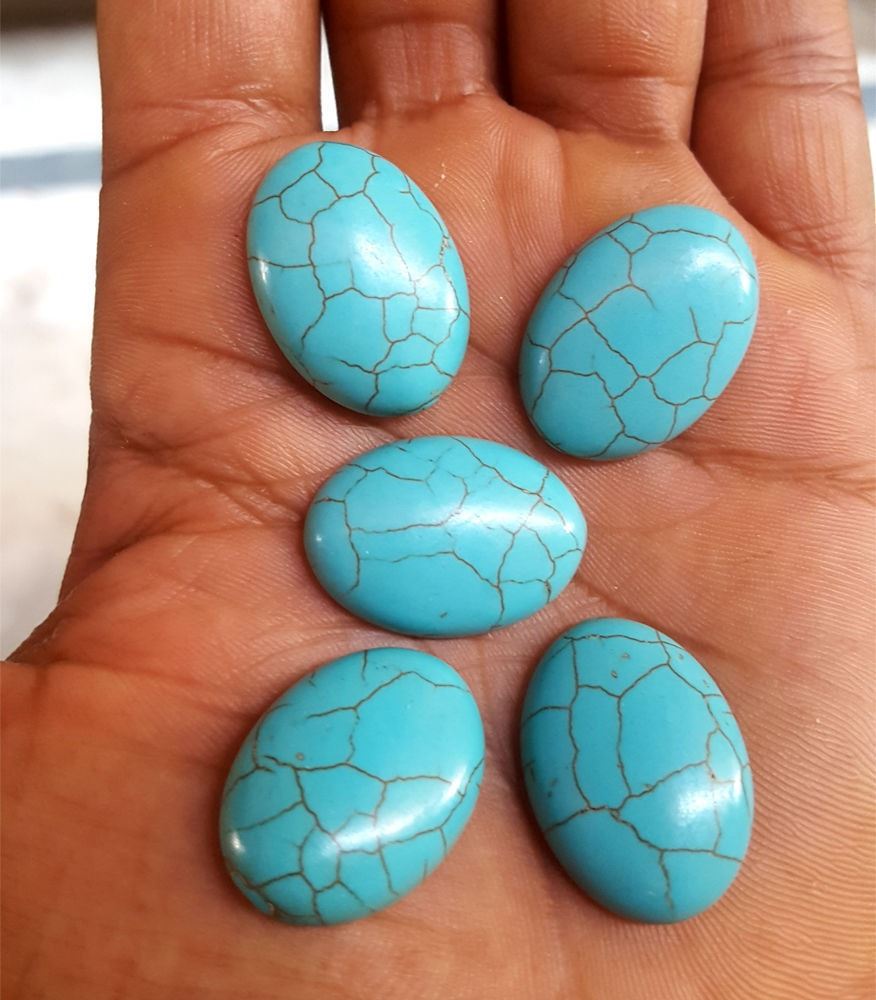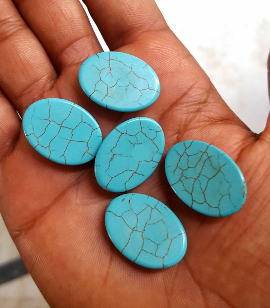 Gemstone Type : Turquoise , Color : Blue , Shape : Oval Cabochon , Size : 18x25 mm , Quantity : 25 Pieces , Weight : 452.75 Cts