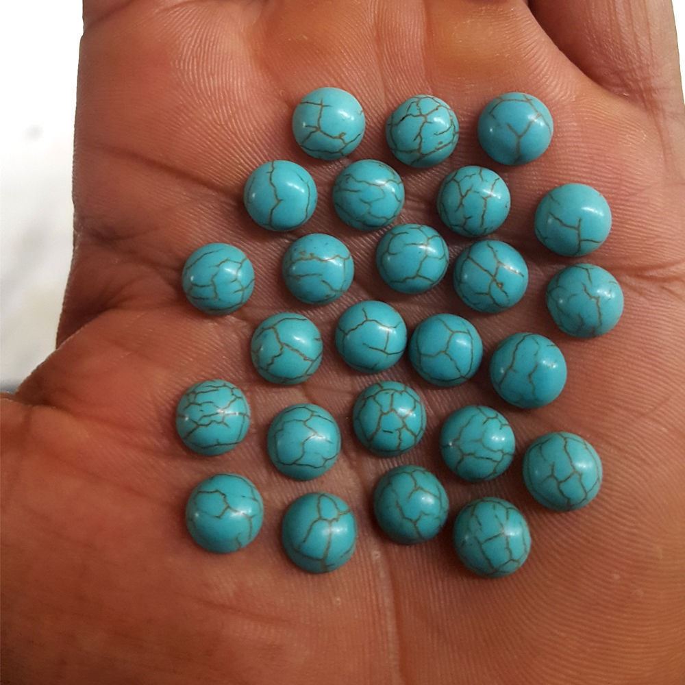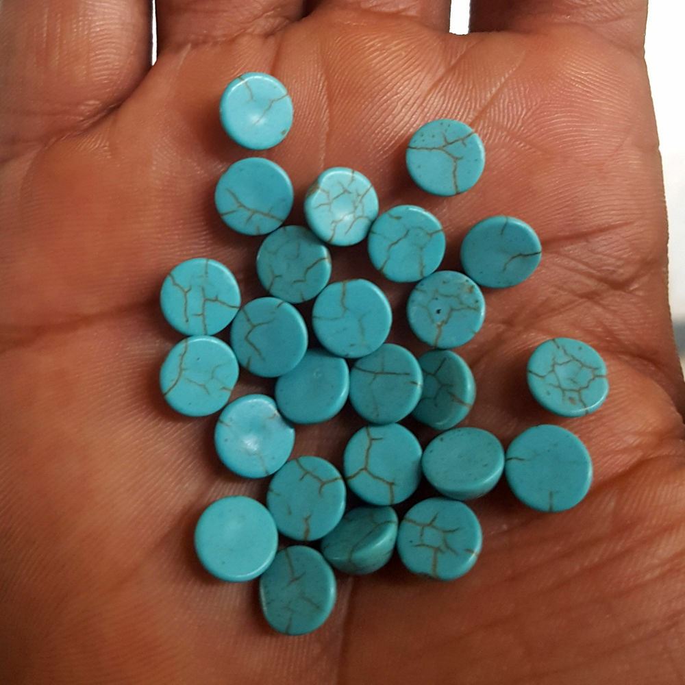 Gemstone Type : Turquoise , Color : Blue , Shape : Round Cabochon , Size : 8 mm , Quantity : 100 Pieces , Weight : 168.00 Cts