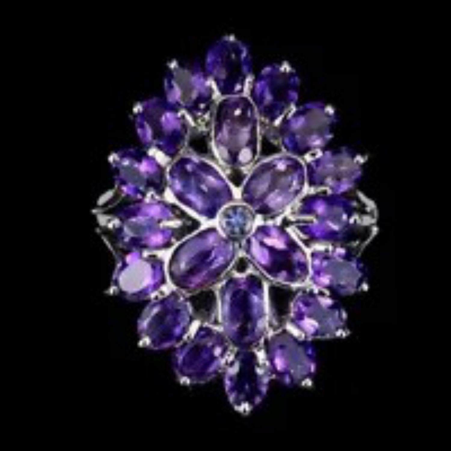 925 STERLING SILVER;PLATE-14K WHITE GOLD;RING SIZE/resizavble-8;MAIN STONE-AMETHYST & Tanzanite ;;MAIN STONE COLOR- PURPLE;CLARITY/GRADE-IF TO VVS;TREATMENT-UNHEATED;ORIGIN-URUGUAY;HARDNESS-7