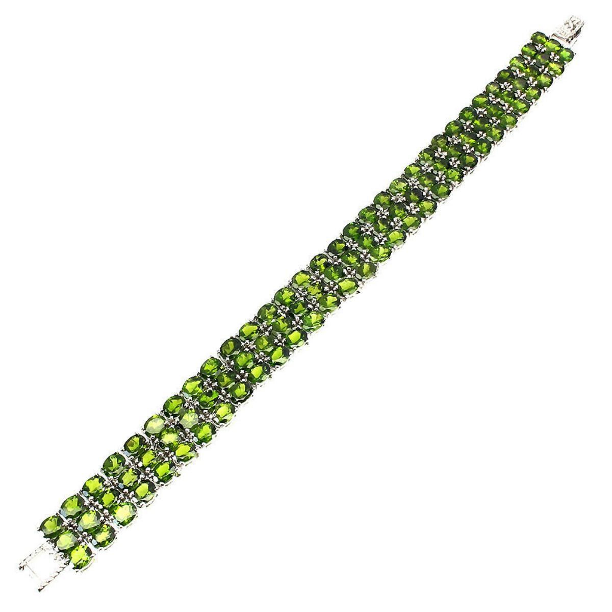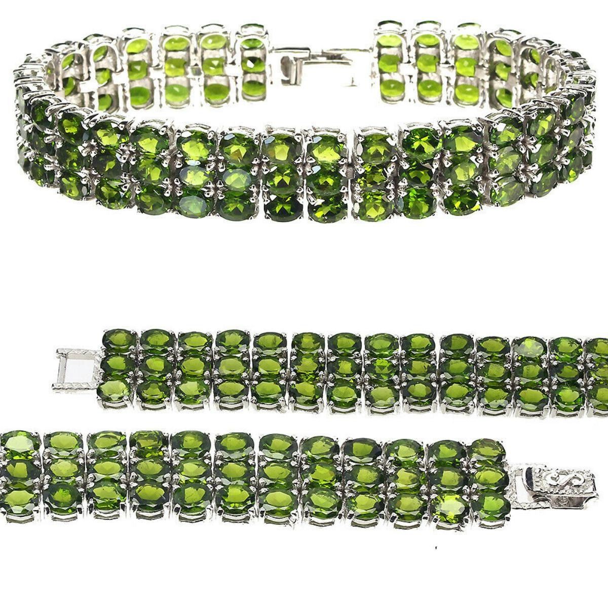 925 STERLING SILVER;PLATE-14K WHITE GOLD;LENGTH (INCHES)-7.5;MAIN STONE-CHROME DIOPSIDE;TOTAL WEIGHT-31.49 GRAM (TOTAL WEIGHT OF SILVER + STONE);DIMENSION-* STONE 5.0 X 4.0 MM. * TOTAL LENGTH 7.5 INCHES. * FACE BRACELET -170.0 X 12.0 MM.;MAIN STONE SHAPE-OVAL CUT;MAIN STONE COLOR-GREEN;CLARITY/GRADE-IF TO VVS;TREATMENT-UNHEATED;ORIGIN-RUSSIA;HARDNESS-5.0 - 5.5;