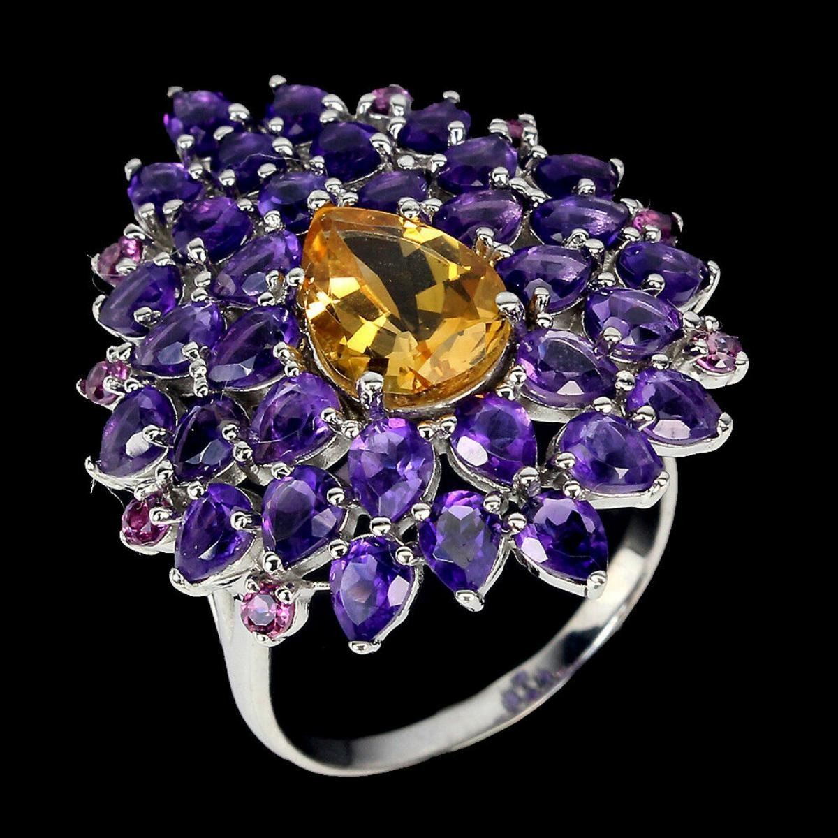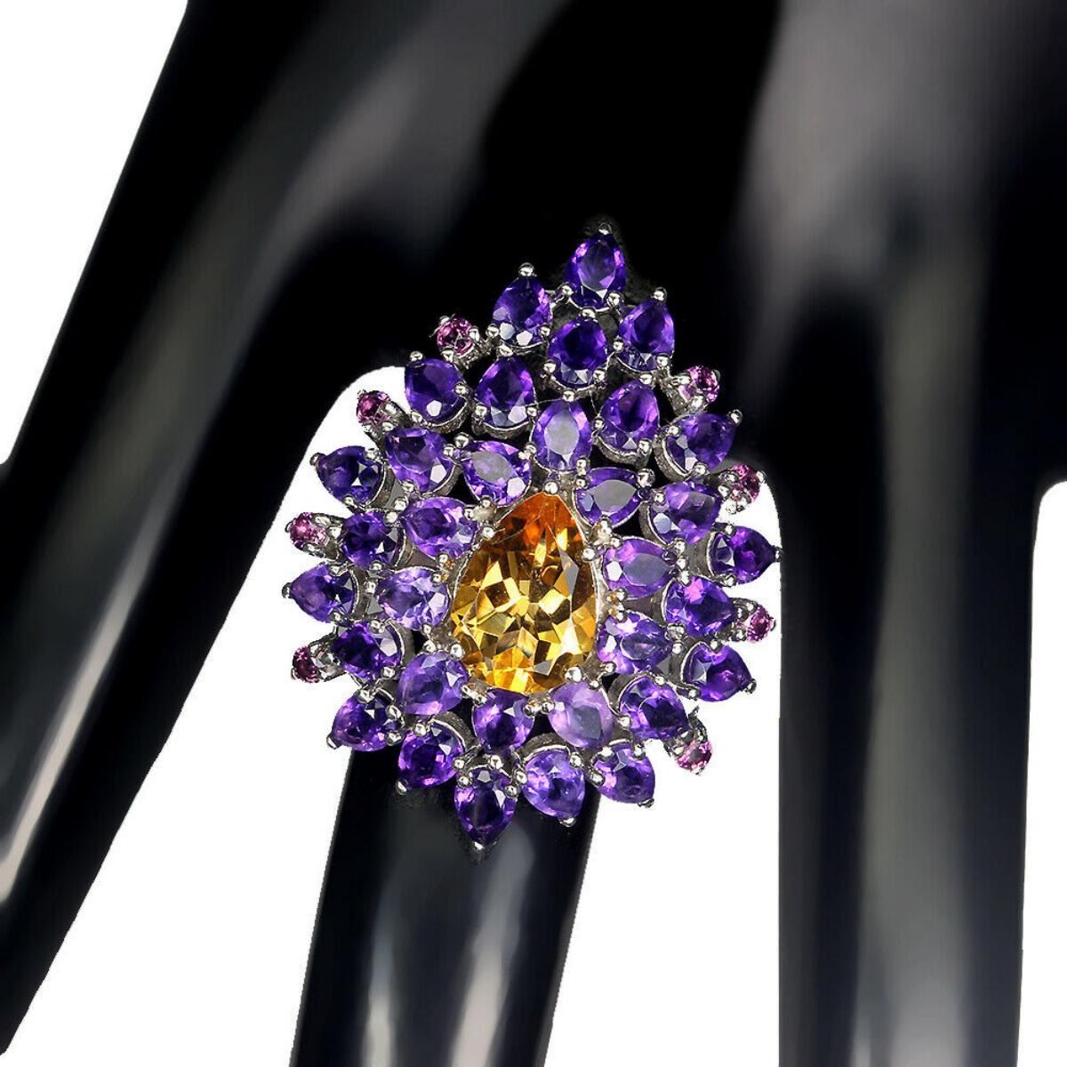Natural Unheated Citrine Amethyst Rhodolite Ring