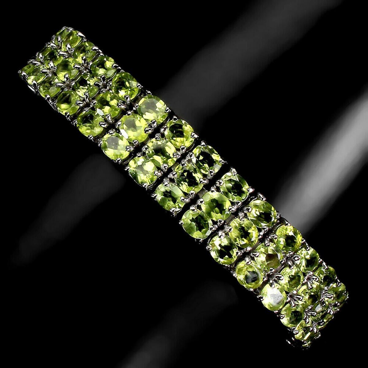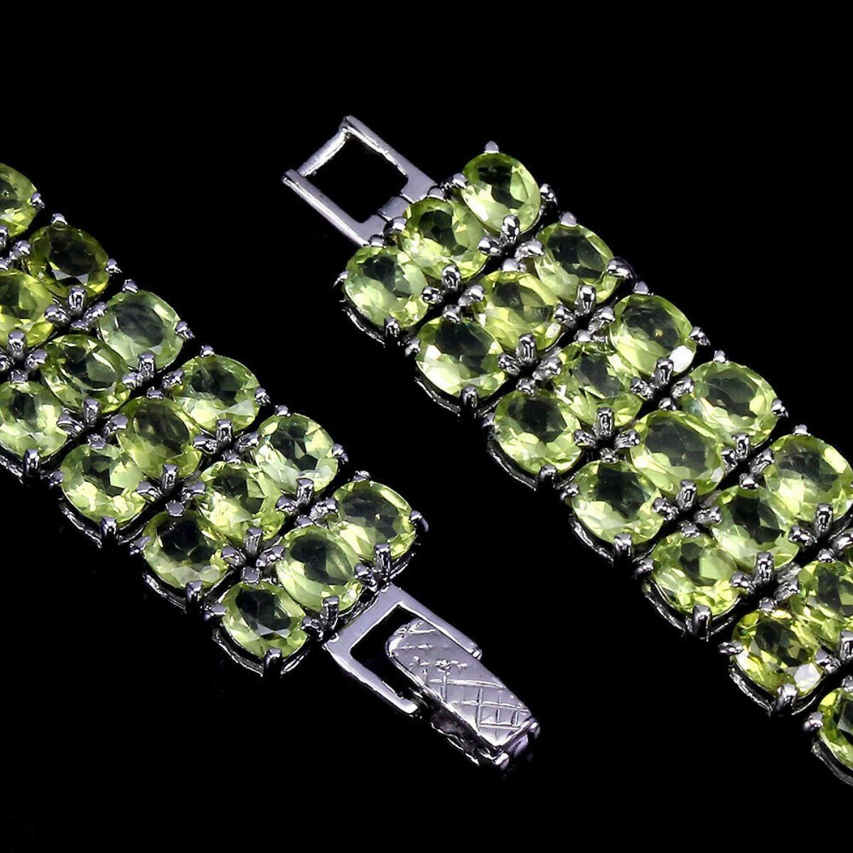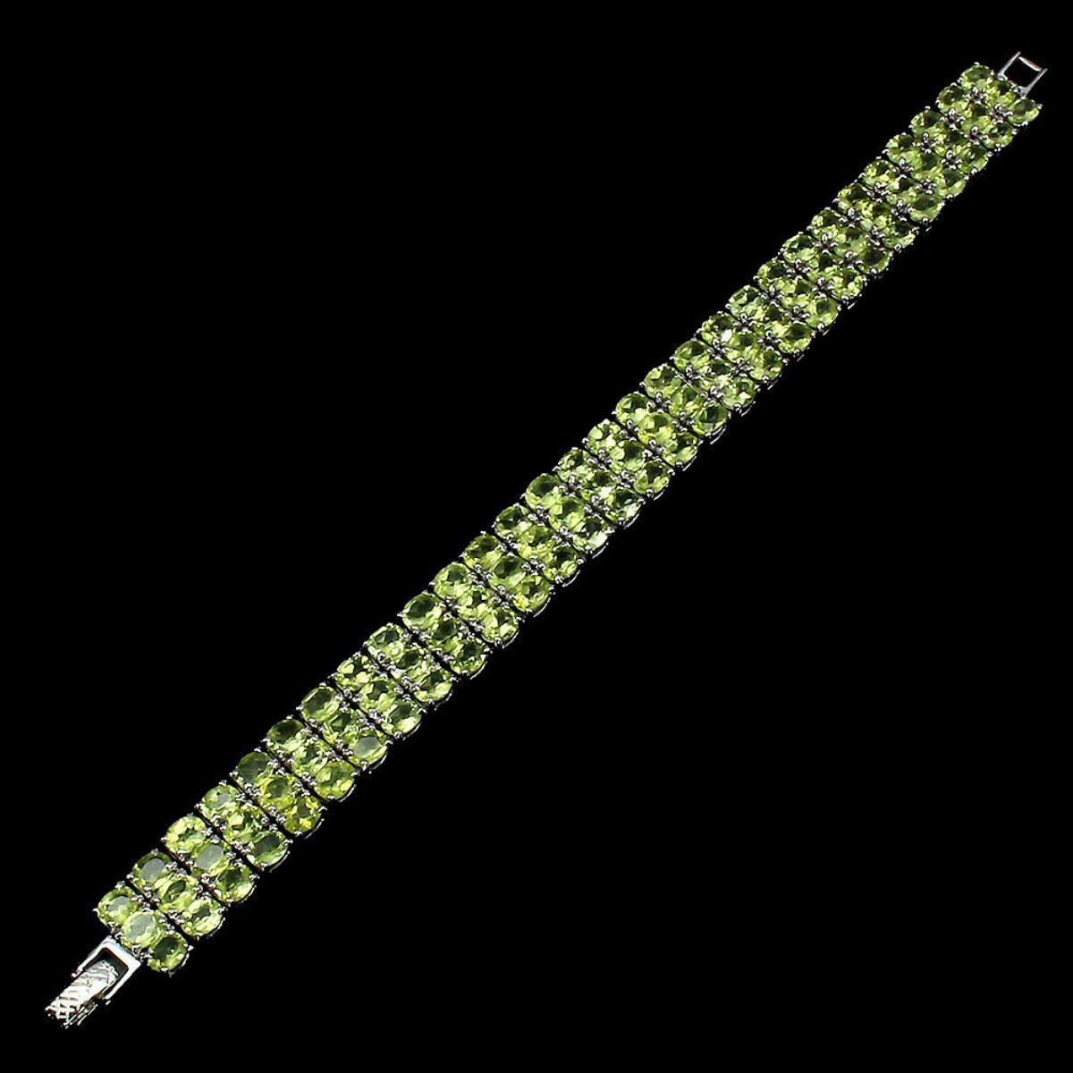 925 STERLING SILVER;PLATE-14K WHITE GOLD;LENGTH (INCHES)7.5;MAIN STONE-PERIDOT;TOTAL WEIGHT-30.7 GRAM (TOTAL WEIGHT OF SILVER + STONE)DIMENSION-* STONE 5.0 X 4.0 MM. * LENGTH 7.5 INCHES.* FACE BRACELET- 170.0 X 12.0 MM.;MAIN STONE SHAPE-OVAL CUT;MAIN STONE COLOR-TOP RICH GREEN;;CLARITY/GRADE-IF TO VVS;TREATMENT-UNHEATED;ORIGIN-PAKISTAN;HARDNESS-6.5 - 7.0;