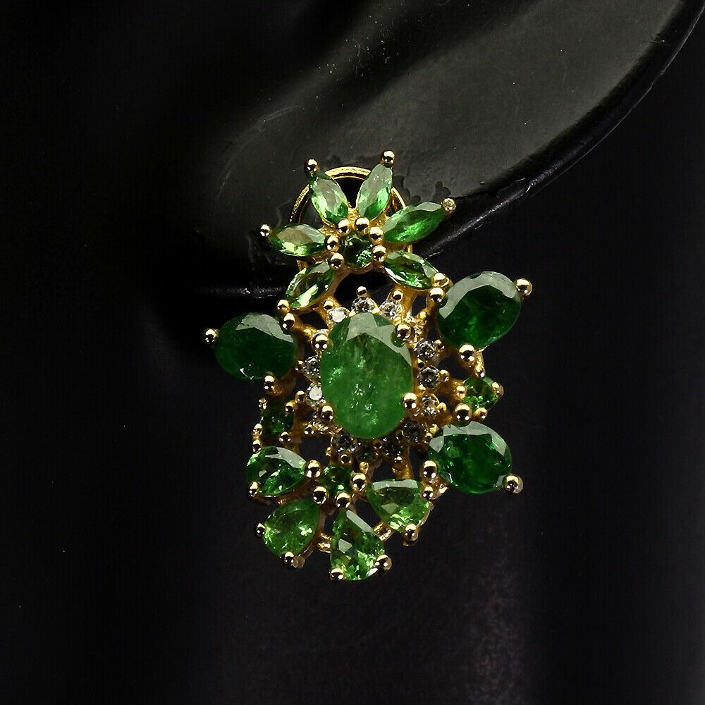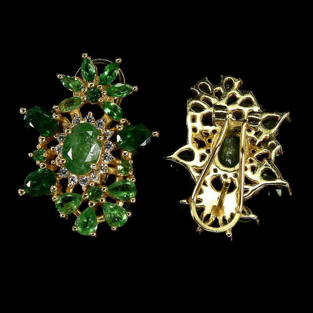925 STERLING SILVER;PLATE-14K YELLOW GOLD;MAIN STONE-TSAVORITE GARNET;DIMENSION* STONE 2.0 TO 7.0 X 5.0 MM. * CZ 1.0 MM. * FACE EARRINGS 26.0 X 20.0 MM.;MAIN STONE SHAPE-OVAL CUT;MAIN STONE COLOR-TOP RICH GREEN;CLARITY/GRADETRANSPARENT;LUSTER-PRECIOUS;TREATMENT-UNHEATED;ORIGINKENYA - AFRICA;HARDNESS-7.0 - 7.5