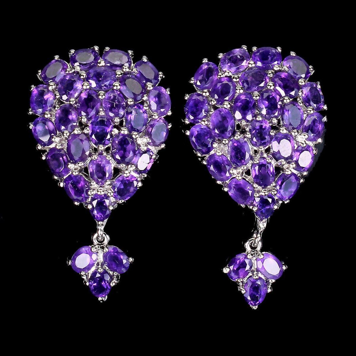 925 STERLING SILVER; PLATE- 14K WHITE GOLD; MAIN STONE- AMETHYST; TOTAL WEIGHT- 7.32 GRAM (TOTAL WEIGHT OF SILVER + STONE) DIMENSION * STONE 4.0 X 3.0 MM. * FACE EARRINGS 34.0 X 19.0 MM.; MAIN STONE SHAPE- OVAL CUT; MAIN STONE COLOR- TOP RICH PURPLE; CLARITY/GRADE- IF TO VVS; TREATMENT- UNHEATED; ORIGIN- URUGUAY; HARDNESS- 7;