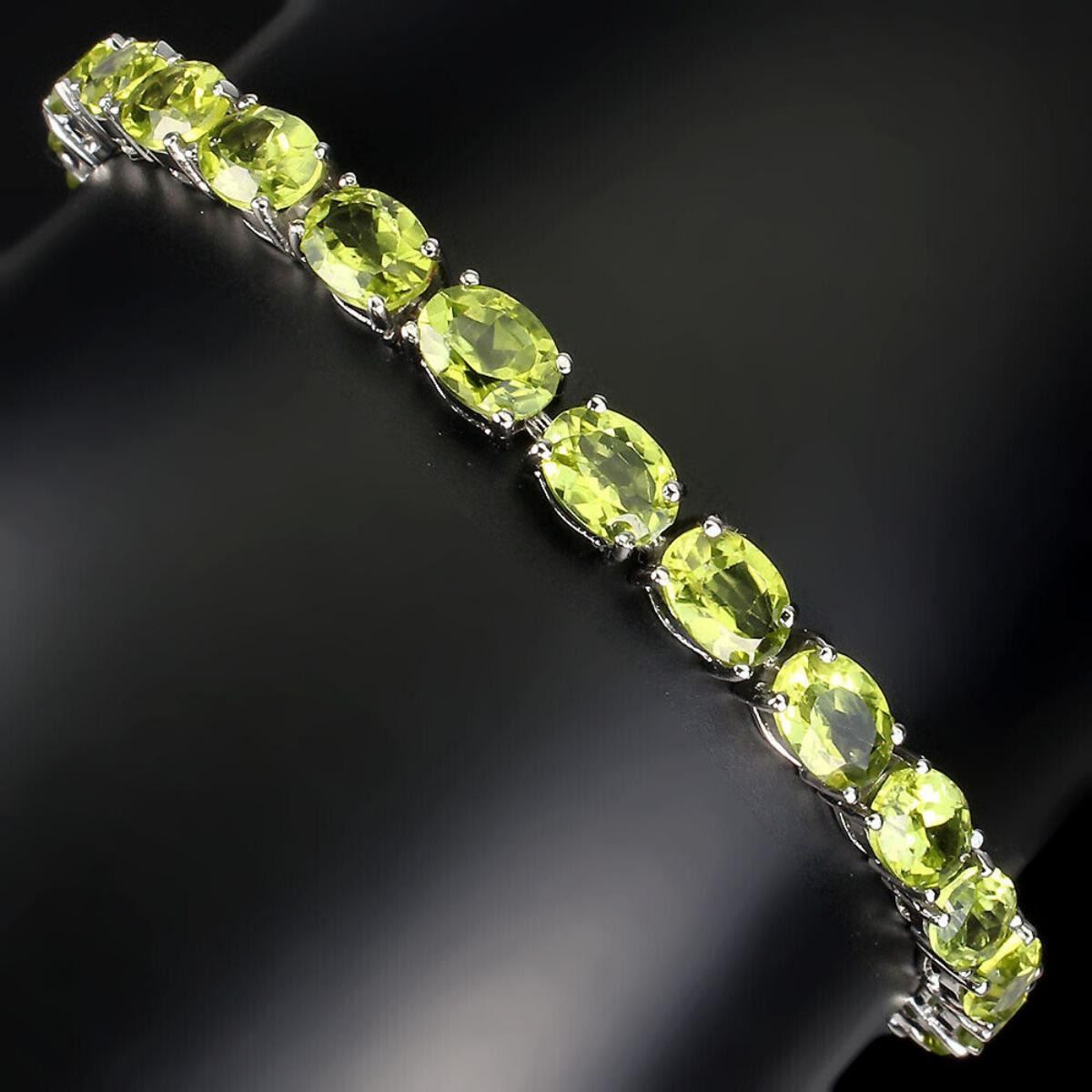 925 STERLING SILVER;PLATE-14K WHITE GOLD;LENGTH (INCHES)9;MAIN STONE-PERIDOT;TOTAL WEIGHT-11.95 GRAM (TOTAL WEIGHT OF SILVER + STONE)DIMENSION-* STONE 7.0 X 5.0 MM.;* LENGTH 9.0 INCHES.* FACE BRACELET 175.0 X 5.0 MM.;MAIN STONE SHAPE-OVAL CUT;MAIN STONE COLOR- RICH GREEN;CLARITY/GRADE-IF TO VVS;TREATMENT-UNHEATED;ORIGIN-PAKISTAN;