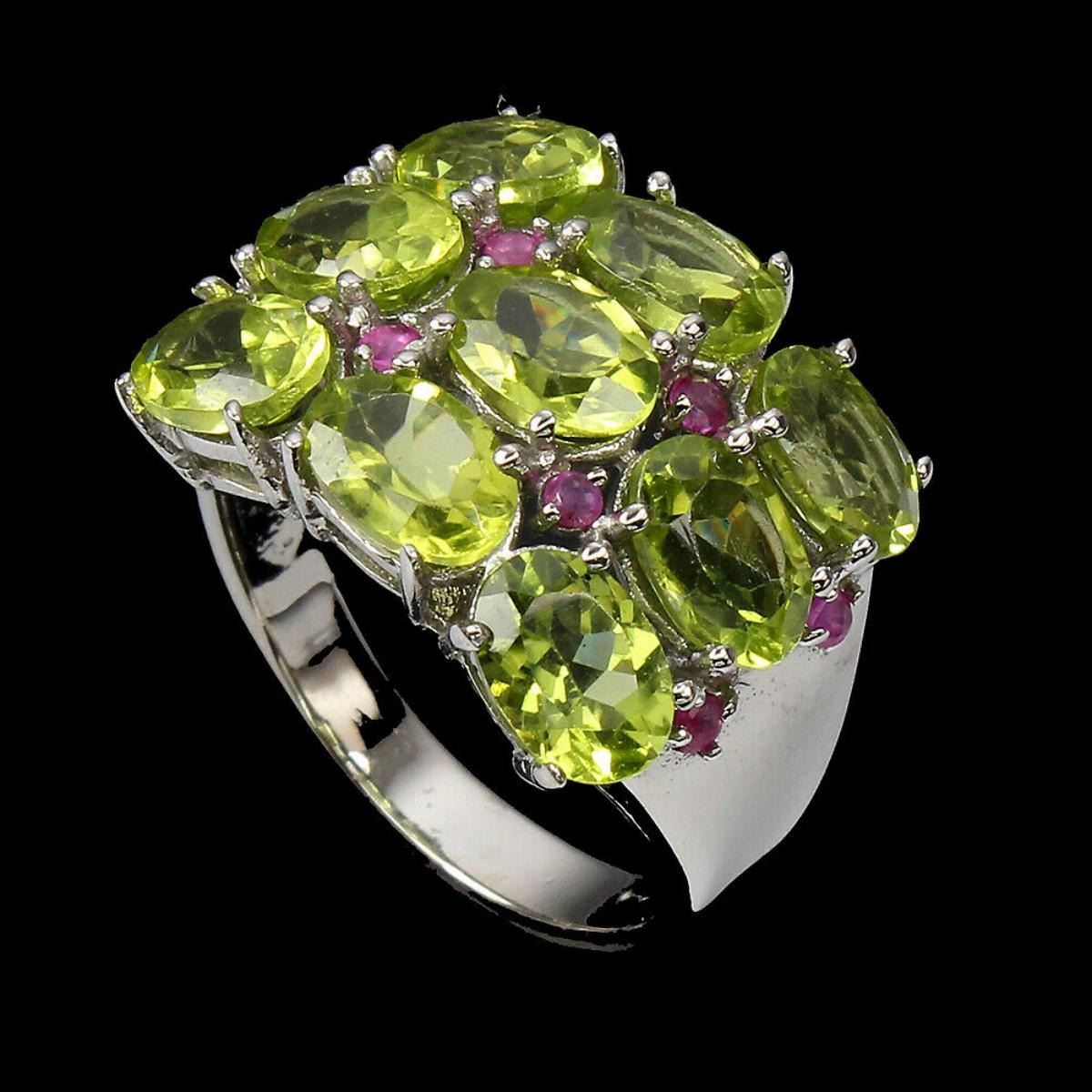 925 STERLING SILVER;PLATE-14K WHITE GOLD;RING SIZE-9(resizeable);MAIN STONE-PERIDOT;OTHER GEMS-RUBY;TOTAL WEIGHT-6.77 GRAM (TOTAL WEIGHT OF SILVER + STONE)DIMENSION-* STONE 1.5 TO 7.0 X 5.0 MM. * RING SIZE 9.0 * FACE RING- 21.0 X 16.0 MM.;MAIN STONE SHAPE-OVAL CUT;MAIN STONE COLOR-TOP RICH GREEN;CLARITY/GRADE-IF TO VVS;TREATMENT-UNHEATED;ORIGIN-PAKISTAN;HARDNESS-6.5 - 7.0;