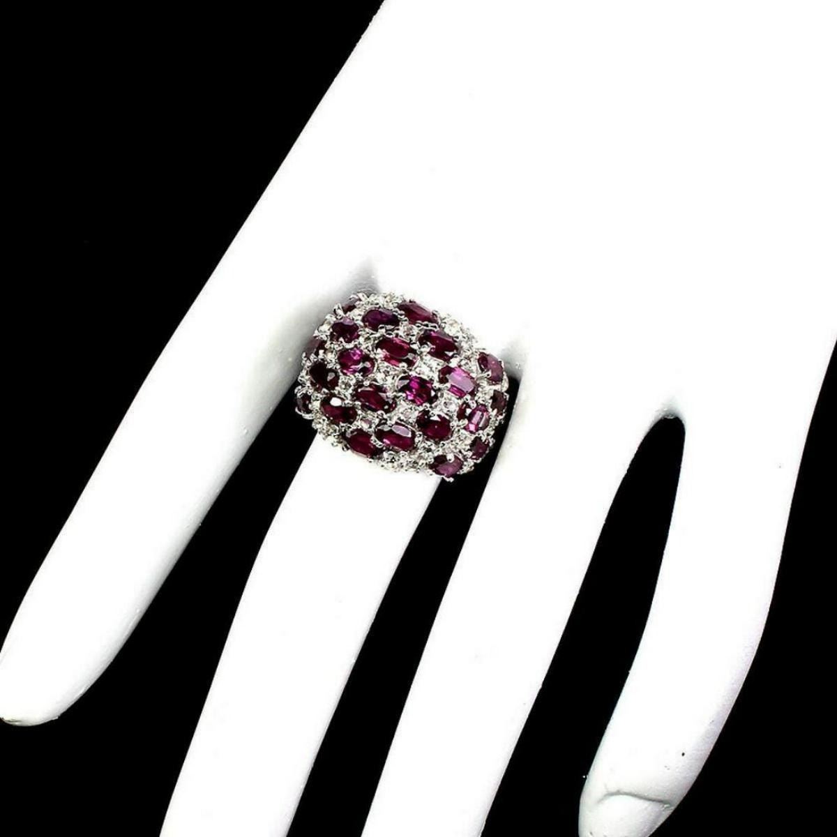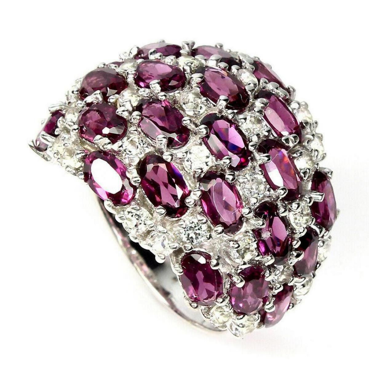 925 STERLING SILVER;PLATE-14K WHITE GOLD;RING SIZE-8(Resizeable)MAIN STONE-RHODOLITE GARNET;OTHER GEMS-WHITE TOPAZ;TOTAL WEIGHT-8.17 GRAM (TOTAL WEIGHT OF SILVER + STONE)DIMENSION* STONE 2.0 TO 5.0 X 3.0 MM. * FACE RING 25.0 X 19.0 MM.MAIN STONE SHAPE-OVAL CUT;MAIN STONE COLOR-TOP RICH PINK RASPBERRY;CLARITY/GRADE-IF TO VVS;LUSTER-GORGEOUS;TREATMENT-UNHEATED;ORIGIN-AFRICA;HARDNESS7.0 - 7.5