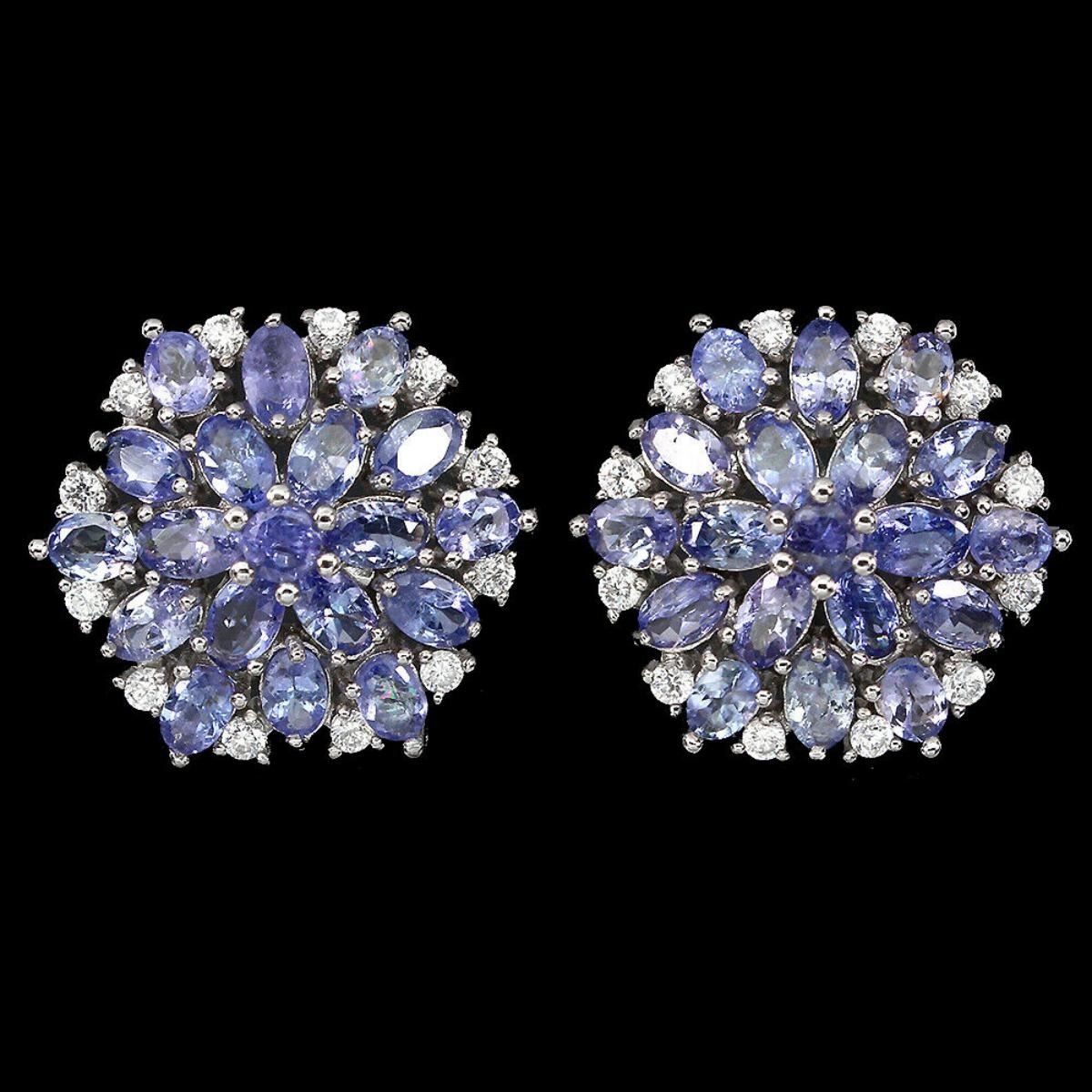 925 STERLING SILVER;PLATE-14K WHITE GOLD;MAIN STONE-TANZANITE;TOTAL WEIGHT-7.67 GRAM (TOTAL WEIGHT OF SILVER + STONE)DIMENSION--* STONE 3.5 TO 5.0 X 3.0 MM. * CZ 2.0 MM. * FACE EARRINGS- 21.0 X 21.0 MM.;MAIN STONE SHAPE-OVAL CUT;MAIN STONE COLOR-TOP NICE BLUE VIOLET;CLARITY/GRADE-IF TO VVS;TREATMENT-UNHEATED;ORIGIN-TANZANIA - AFRICA;HARDNESS-7.0 - 7.5;