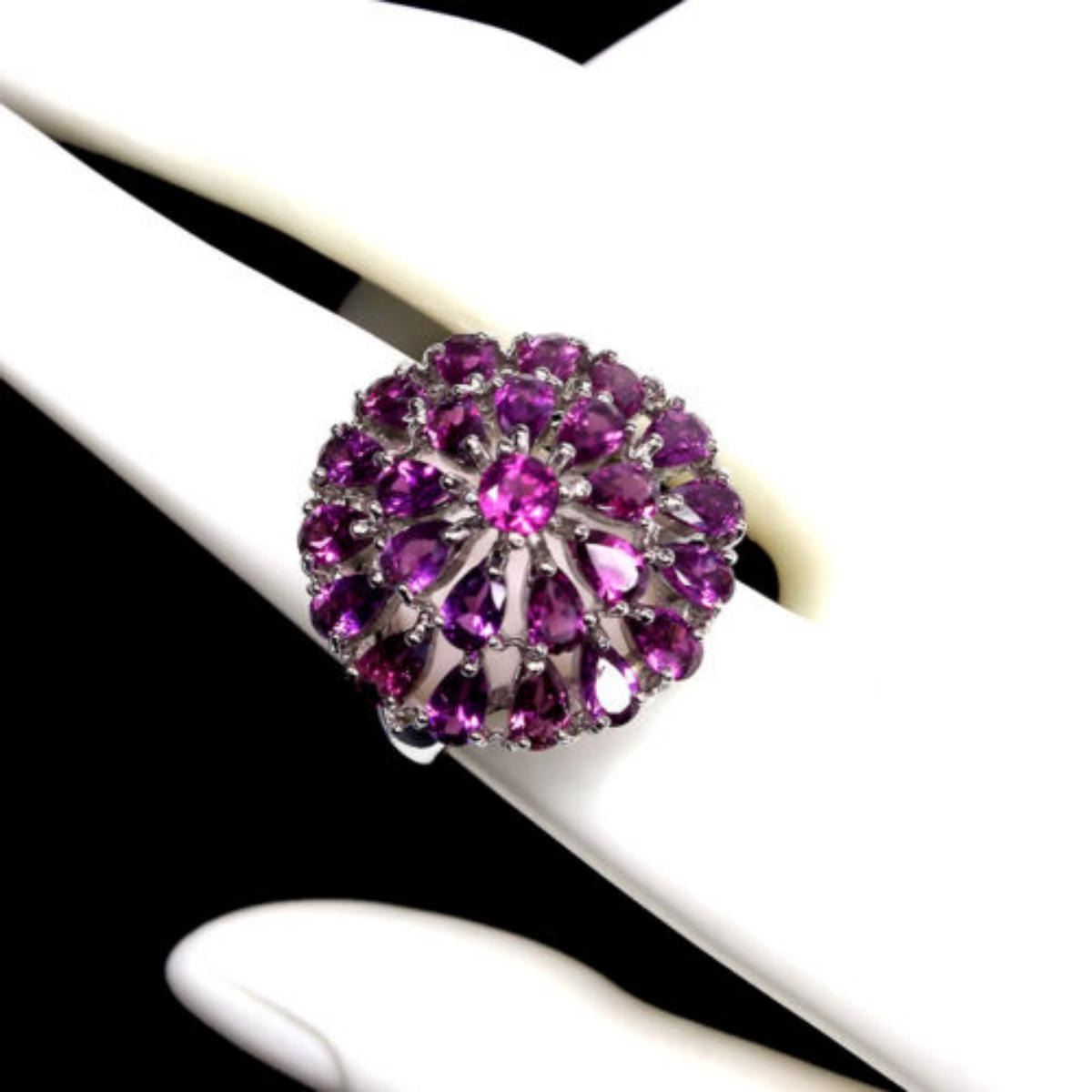 925 STERLING SILVER;PLATE-14K WHITE GOLD;RING SIZE/resizable-8.5;MAIN STONE-RHODOLITE GARNET;TOTAL WEIGHT-7.65 GRAM (TOTAL WEIGHT OF SILVER + STONE)DIMENSION-* STONE 4.0 TO 5.0 X 3.0 MM.;* FACE RING- 23.0 X 23.0 MM.;MAIN STONE SHAPE-ROUND CUT;MAIN STONE COLOR-PINK RASPBERRY;CLARITY/GRADE-IF TO VVS;TREATMENT-UNHEATED;HARDNESS-7.0 - 7.5;ORIGIN-AFRICA