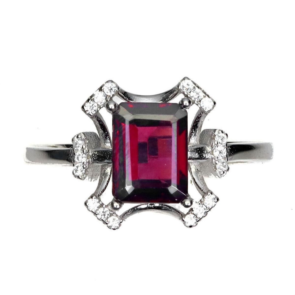 925 STERLING SILVER;PLATE-14K WHITE GOLD;RING SIZE/resizable-7;MAIN STONE-RHODOLITE GARNET;TOTAL WEIGHT-2.83 GRAM (TOTAL WEIGHT OF SILVER + STONE)DIMENSION-* STONE 8.0 X 6.0 MM.;* FACE RING -13.0 X 12.0 MM.;MAIN STONE SHAPE-OCTAGON CUT;MAIN STONE COLOR-PINK RASPBERRY;CLARITY/GRADE-IF TO VVS;TREATMENT-UNHEATED;ORIGIN-AFRICA;HARDNESS-7.0 - 7.5;