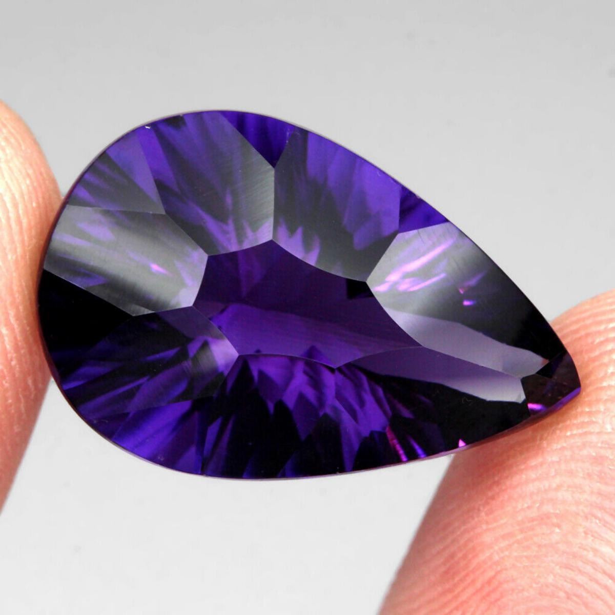 TOTAL WEIGHT-16.67 CT;DIMENSION-22.0 X 15.0 X 10.0 MM.;MAIN STONE SHAPE-PEAR CONCAVE CUT;MAIN STONE COLOR- PURPLE;CLARITY/GRADE-IF;LUSTER-SUPERIOR;TREATMENT-UNHEATED;ORIGIN-URUGUAY;HARDNESS-7;
