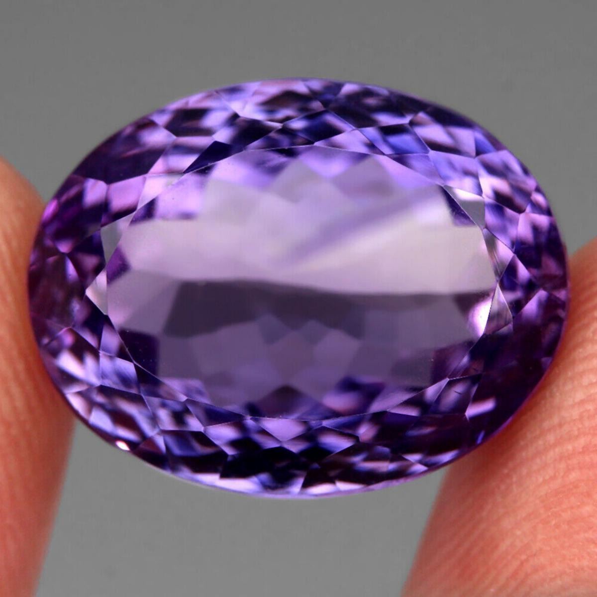 MAIN STONE-AMETHYST;TOTAL WEIGHT-20.44 CT;DIMENSION-18.0 X 14.0 X 11.0 MM.;MAIN STONE SHAPE-OVAL;MAIN STONE COLOR- PURPLE;CLARITY/GRADE-VVS;TREATMENT-UNHEATED;ORIGIN-URUGUAY;HARDNESS-7;