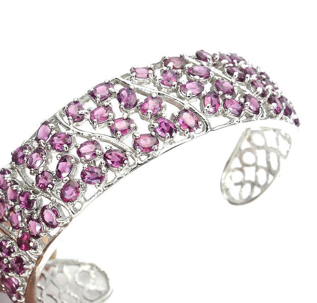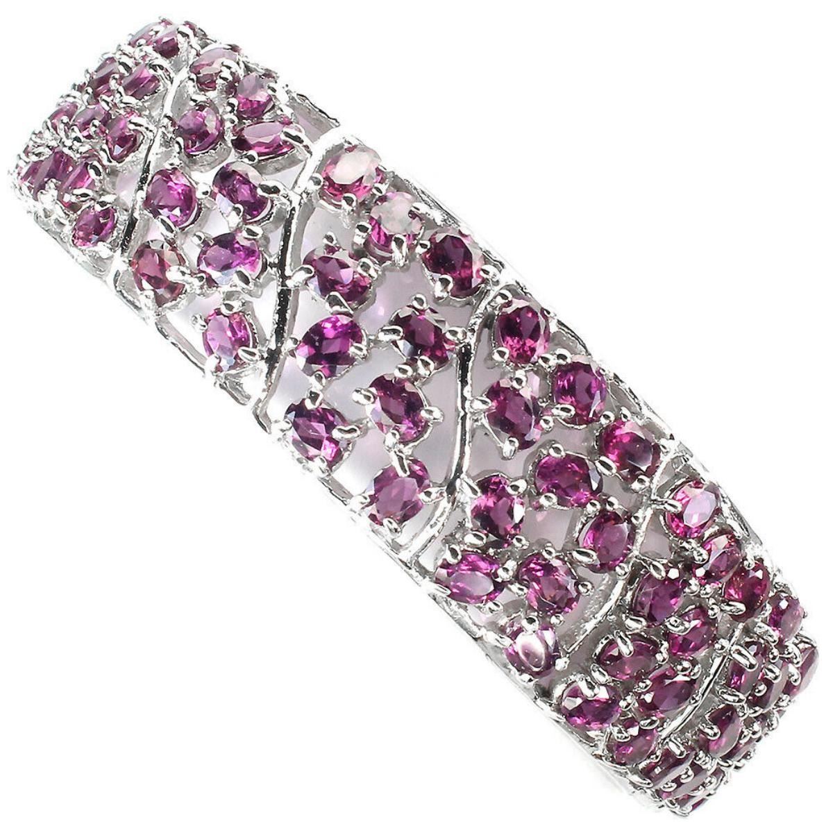 925 STERLING SILVER;PLATE-14K WHITE GOLD;MAIN STONE-RHODOLITE GARNET;TOTAL WEIGHT-20.58 GRAM (TOTAL WEIGHT OF SILVER + STONE);DIMENSION-* STONE 4.0 X 3.0 MM.* DIAMETER 1.9 X 2.0 INCHES.* FACE BANGLE 61.0 X 17.0 MM.;MAIN STONE SHAPE-OVAL; MAIN STONE COLOR-PINK RASPBERRY;CLARITY/GRADE-IF;TREATMENT-UNHEATED;ORIGIN-AFRICA;HARDNESS-7.0 - 7.5;