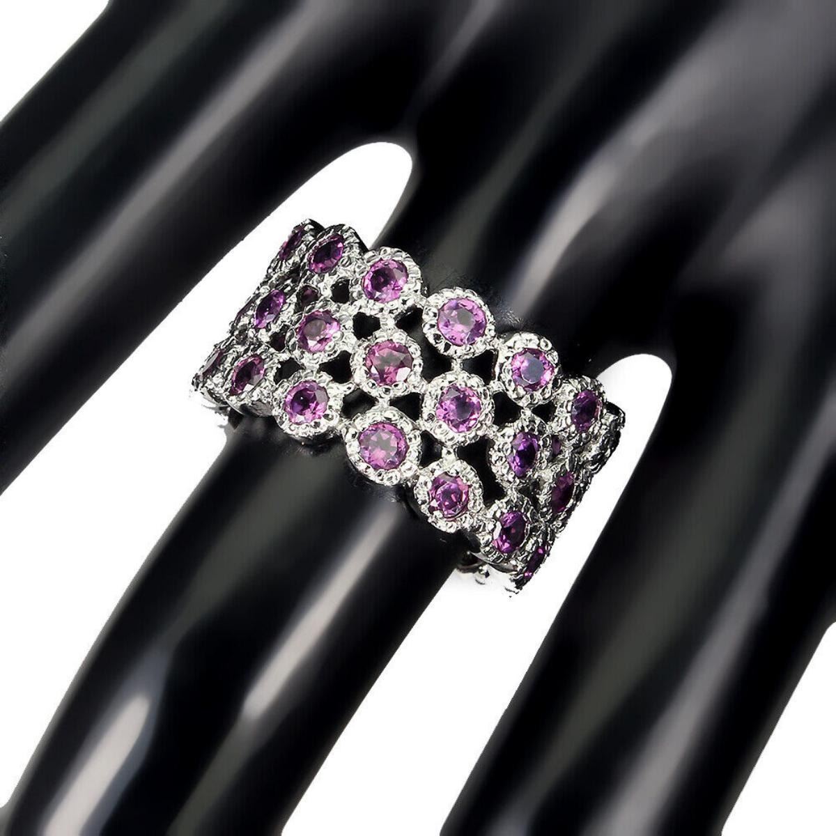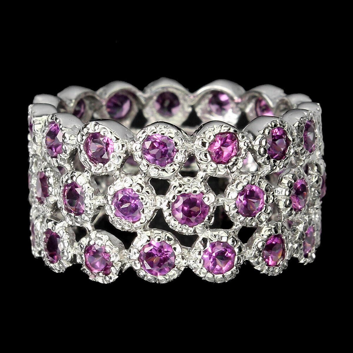 Natural Unheated Rhodolite Garnet Eternity Ring
