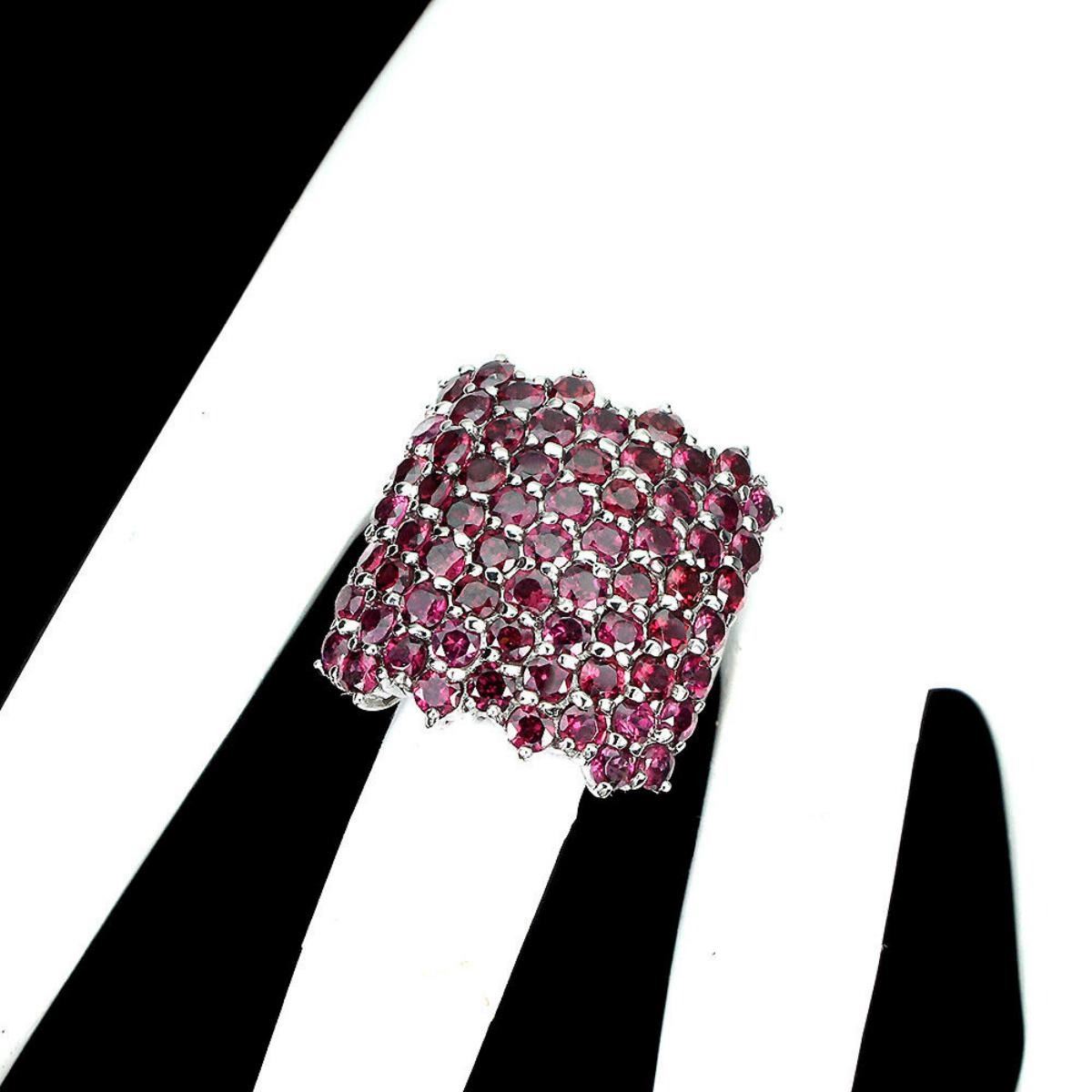 925 STERLING SILVER;PLATE-14K WHITE GOLD;RING SIZE-9.(RESIZABLE);MAIN STONE-RHODOLITE GARNET;TOTAL WEIGHT-13.44 GRAM (TOTAL WEIGHT OF SILVER + STONE);DIMENSION-* STONE 3.0 MM.* RING SIZE 9.5* FACE RING 27.0 X 25.0 MM.;MAIN STONE SHAPE-ROUND CUT;MAIN STONE COLOR- PINK RASPBERRY;TREATMENT-UNHEATED;ORIGIN-AFRICA;