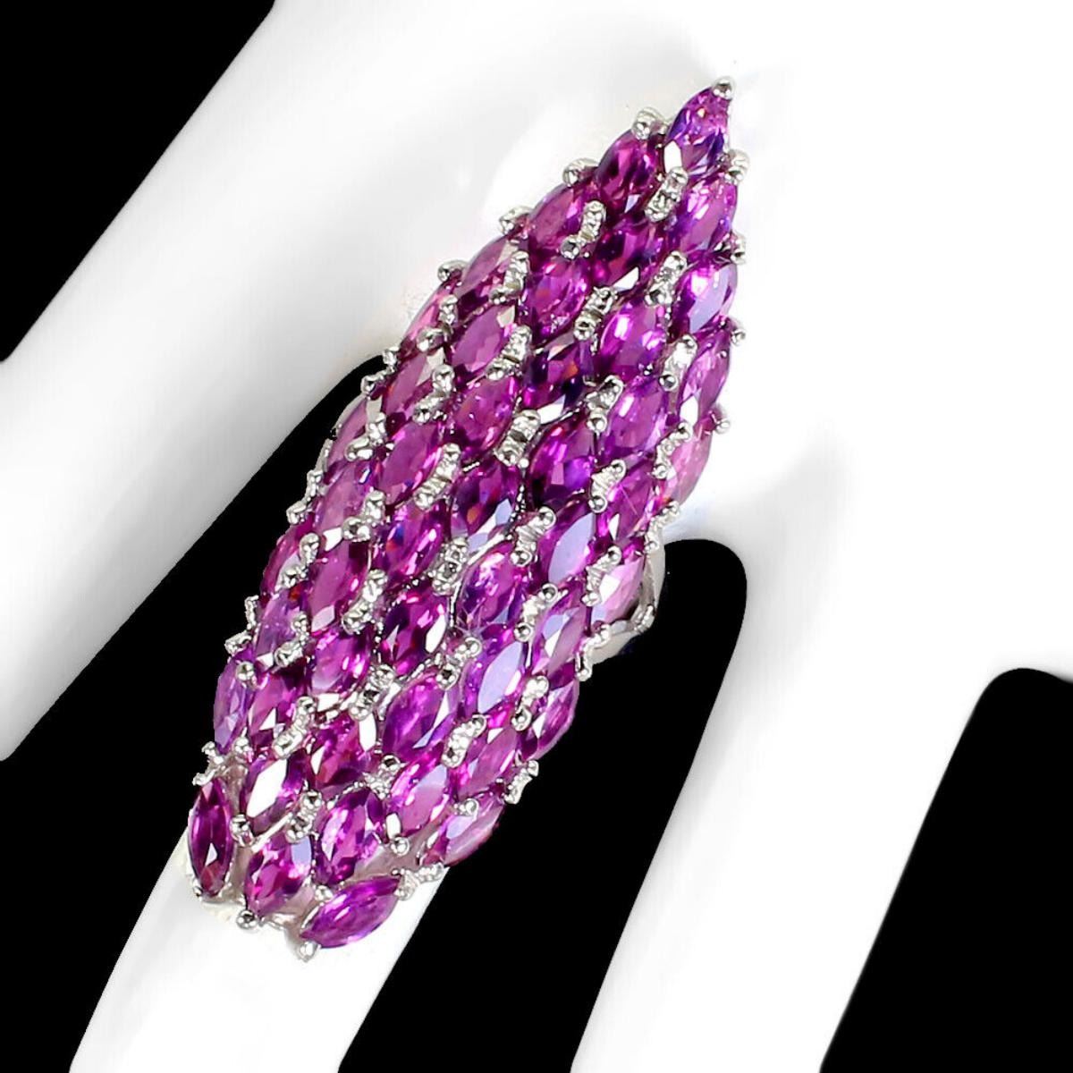 925 STERLING SILVER;PLATE-14K WHITE GOLD;RING SIZE-8.5(RESIZABLE);MAIN STONE-RHODOLITE GARNET;TOTAL WEIGHT-11.57 GRAM (TOTAL WEIGHT OF SILVER + STONE);DIMENSION-* STONE 6.0 X 3.0 MM.* RING SIZE 8.5* FACE RING 51.0 X 18.0 MM.;MAIN STONE SHAPE-MARQUISE CUT;MAIN STONE COLOR-PINK RASPBERRY;CLARITY/GRADE-IF TO VVS;TREATMENT-UNHEATED;ORIGIN-AFRICA;
