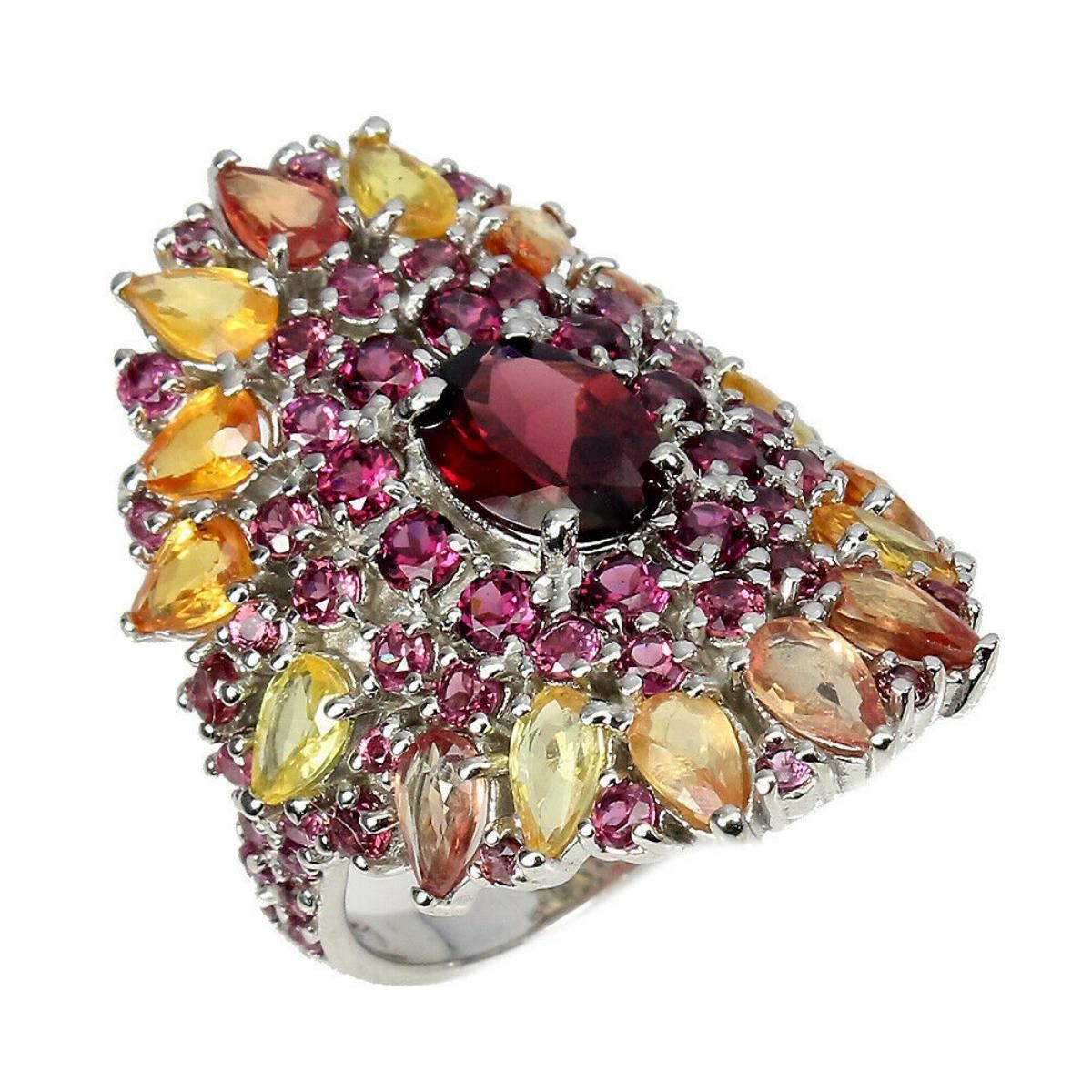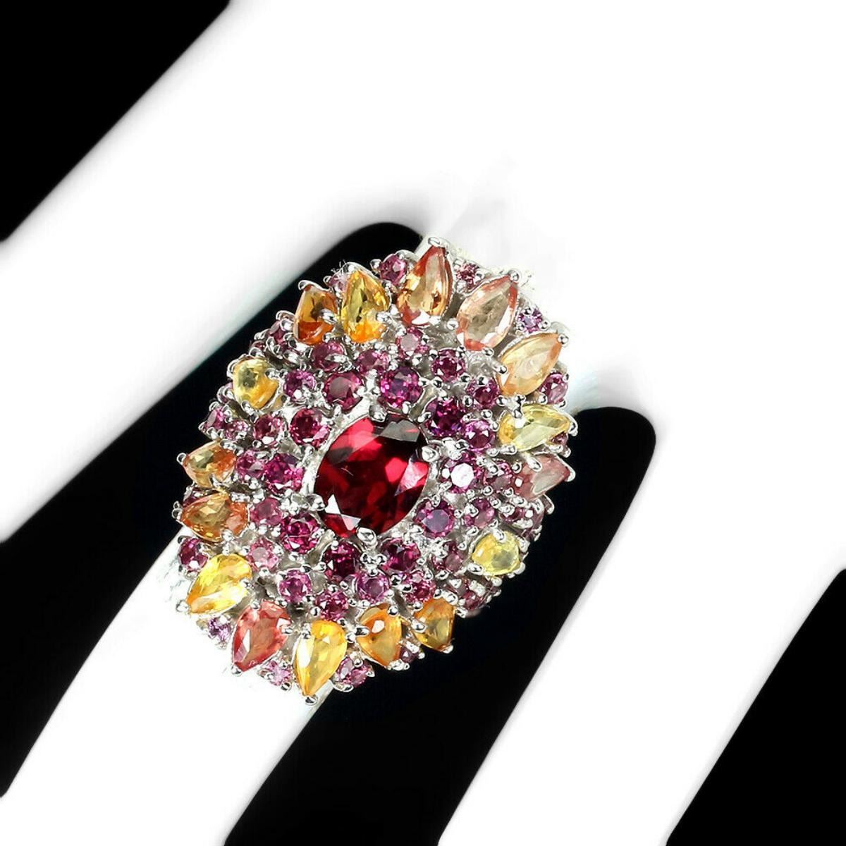 Natural Unheated Rhodolite Garnet Sapphire Ring