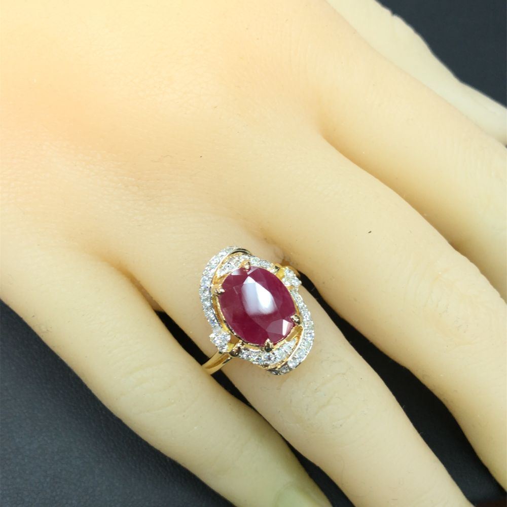 TITLE DESCRIPTION: Natural Unheated Ruby and Diamond Ring, 18Kt Gold