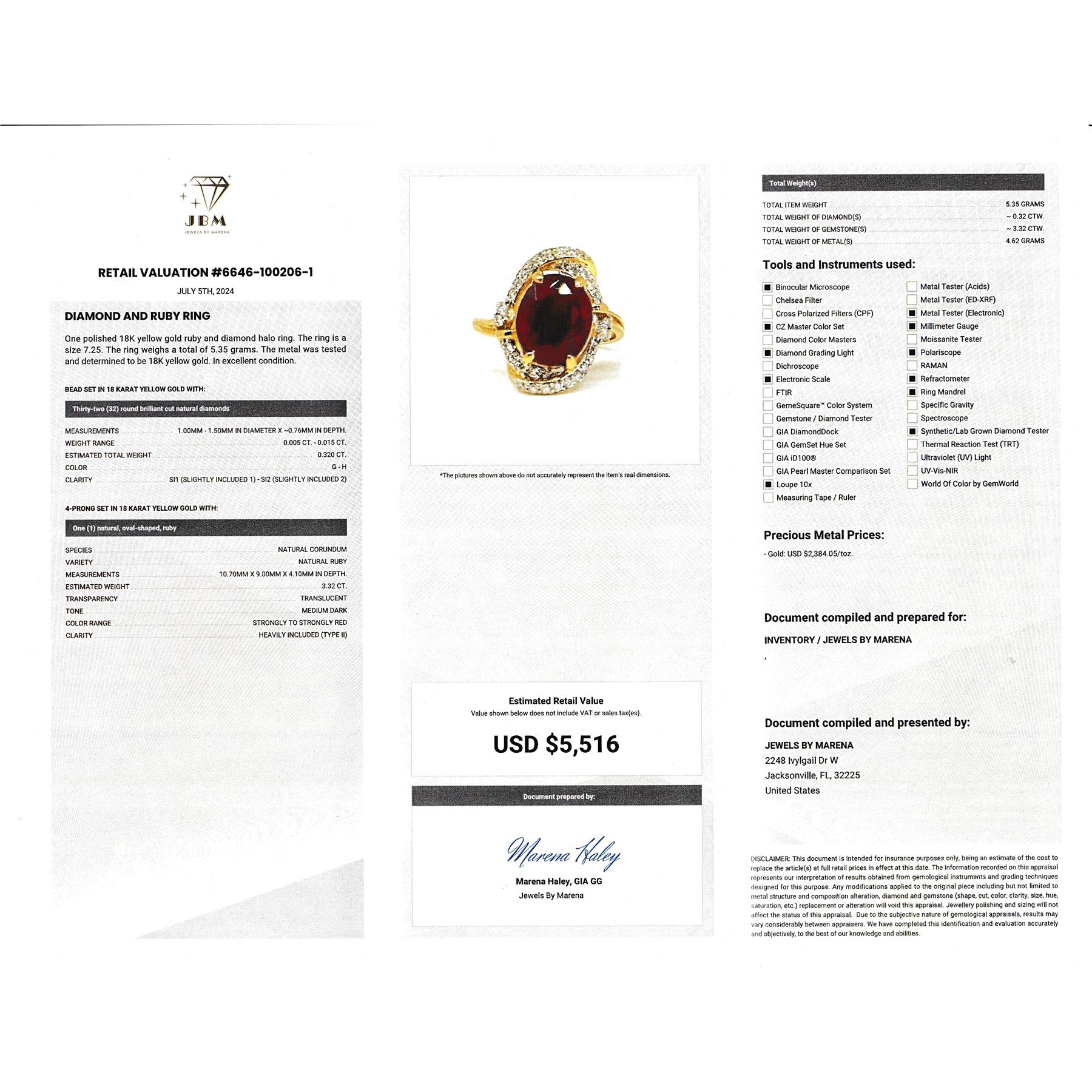 DESCRIPTION DETAIL: 18k Yellow Gold Ruby & Diamond Halo Ring Size 7 US