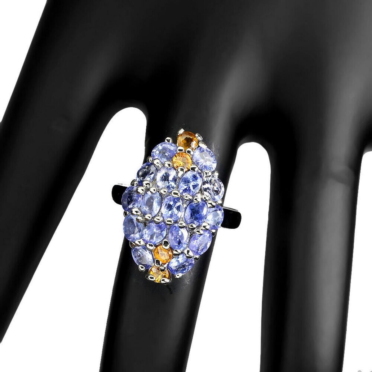 925 STERLING SILVER;PLATE-14K WHITE GOLD;RING SIZE-9(RESIZABLE);MAIN STONE-TANZANITE;OTHER GEMS-SAPPHIRE;TOTAL WEIGHT-4.5 GRAM (TOTAL WEIGHT OF SILVER + STONE);DIMENSION-* STONE 3.0 TO 4.0 X 3.0 MM. * RING SIZE 9.0 * FACE RING 23.0 X 15.0 MM.;MAIN STONE SHAPE-OVAL CUT;MAIN STONE COLOR-BLUE VIOLET;TREATMENT-UNHEATED;ORIGIN-TANZANIA - AFRICA;HARDNESS-7;