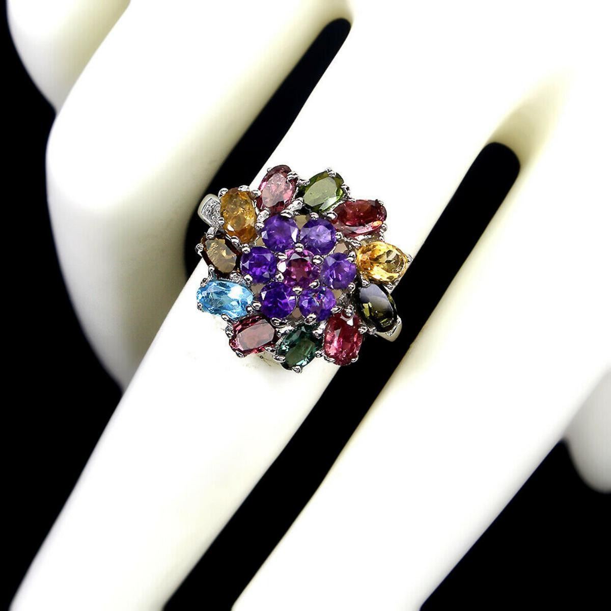 Natural Unheated Tourmaline Rhodolite Amethyst Ring