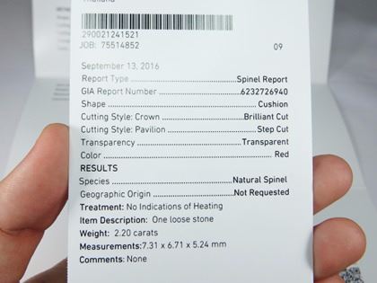 Natural Untreated Red Spinel Cushion 2.20 ct - Size - 7.31 x 6.71 x 5.24 MM ; VS Clarity; Completed untreated; GIA Certified