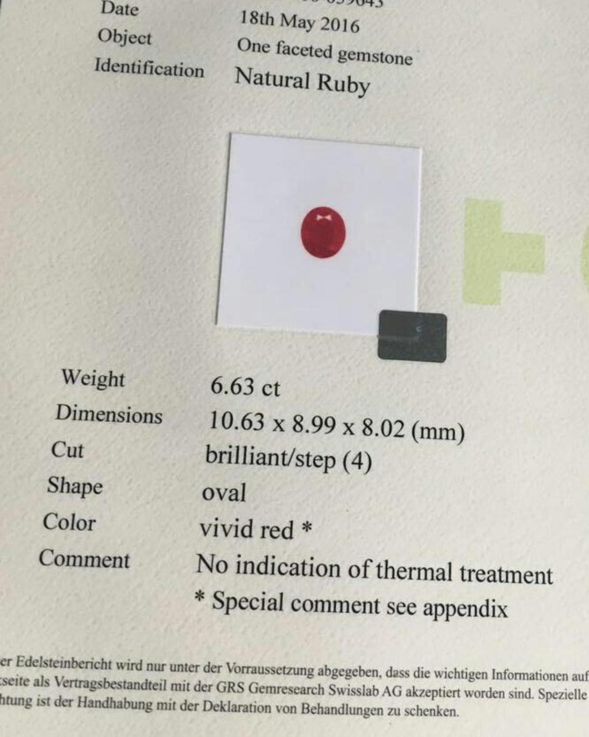 Natural Untreated Vivid Red Ruby 6.63 Cts - Loupe Clean.......GRS swiss lab Certified....