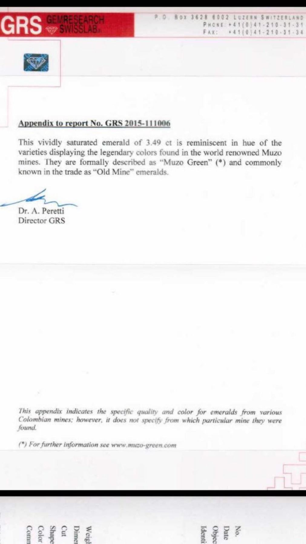 Natural Vivid Green Columbian Emerald 3.49 Ct - VVS .....Museum quality......from Muso Mines Columbia......GRS lab has stated Vivid Green Old Mine Emerald......Certified by Swiss Lab GRS