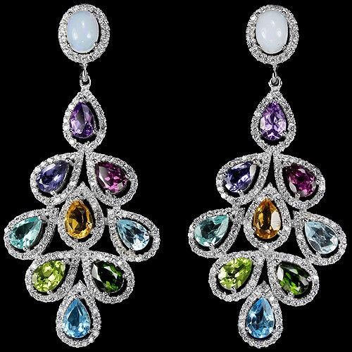 OPAL APATITE AMETHYST TOPAZ CHROME DIOPSIDE RHODOLITE IOLITE PERIDOT CITRINE CZ 925 SILVER EARRING 14K WHITE GOLD COATING; STONE SHAPE OVAL PEAR STONE DIMENSION 7 X 5 MM. , 6 X 4 MM. ITEM WEIGHT 13.9 GRAM COLOR MULTI COLOR CLARITY TRANSLUCENT IF-VVS LUSTER DAZZLING TREATMENT NATURAL UNHEATED IRRADIATION ORIGIN OF STONE AFRICA, BRAZIL, RUSSIA, ASIA HARDNESS 5 - 8 ; FACE OF EARRING 65 X 25 MM. WHITE CUBIC ZIRCONIA 1 MM.
