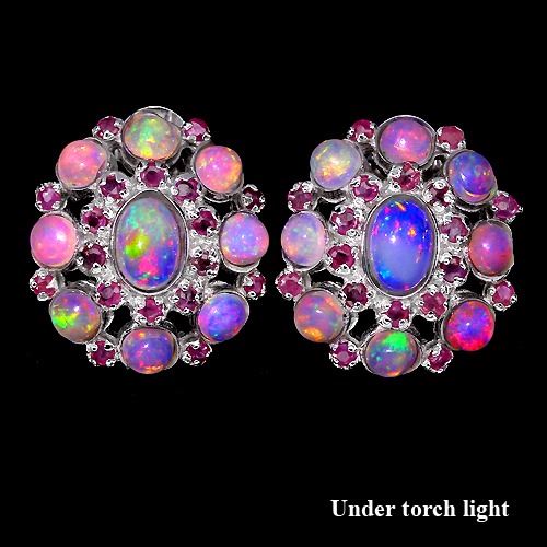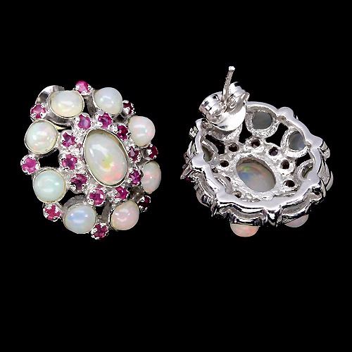FIRE OPAL & RUBY (NATURAL) 14K WHITE GOLD COATING 925 SILVER EARRINGSUNIT OF ITEM (S):2 PIECES ;WEIGHT (CT.):44.04 CT. (total weight of silver + stone);DIMENSION:* STONE 2.0 TO 7.0 X 5.0 MM. * FACE EARRINGS 20.0 X 19.0 MM.;SHAPE/CUT:OVAL, ROUND CABOCHON & ROUND FACET;COLOR:WHITE WITH FIRE RAINBOW LUSTER & TOP RICH RED PINK;CLARITY/GRADE:TRANSPARENT;TREATMENT:UNHEATED & HEATED;ORIGIN:ETHIOPIA & AFRICA;HARDNESS:5.5 - 9.0