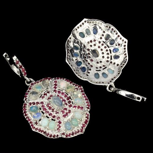 FIRE OPAL & RUBY (NATURAL) 14K WHITE GOLD COATING 925 SILVER EARRINGS;UNIT OF ITEM (S):2 PIECES;WEIGHT (CT.):78.50 CT. (total weight of silver + stone);DIMENSION:* STONE 1.0 TO 6.0 X 4.0 MM. * FACE EARRINGS- 49.0 X 29.0 MM.SHAPE/CUT:OVAL CABOCHON & ROUND FACET;COLOR:WHITE WITH FIRE RAINBOW LUSTER & TOP RICH RED PINK;CLARITY/GRADE:TRANSPARENT;TREATMENT:UNHEATED & HEATED;ORIGIN:ETHIOPIA & AFRICA;HARDNESS:5.5 - 9.0;
