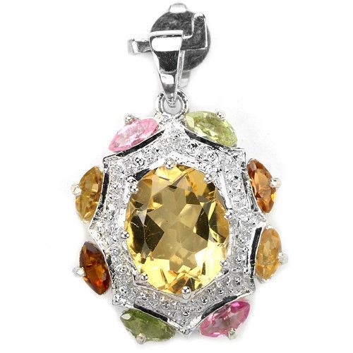 YELLOW CITRINE MULTI COLOR SAPPHIRE 925SILVER PENDANT 14K WHITE GOLD COATING; STONE SHAPE -OVAL PORTUGUESE CUT MARQUISE FACET CUT; STONE DIMENSION -11.1 X 8.9 X 5.3 MM. 5 X 2.5 MM.; MAIN STONE WEIGHT -4.2 GRAM; COLOR -MULTI COLOR; CLARITY -IF, VVS - VS; LUSTER -DAZZLING; TREATMENT -UNHEATED HEAETD; ORIGIN OF STONE -BRIZIL AFRICA; HARDNESS -7.0 - 9.0; FACE OF PENDANT 27 X 20 MM. ;